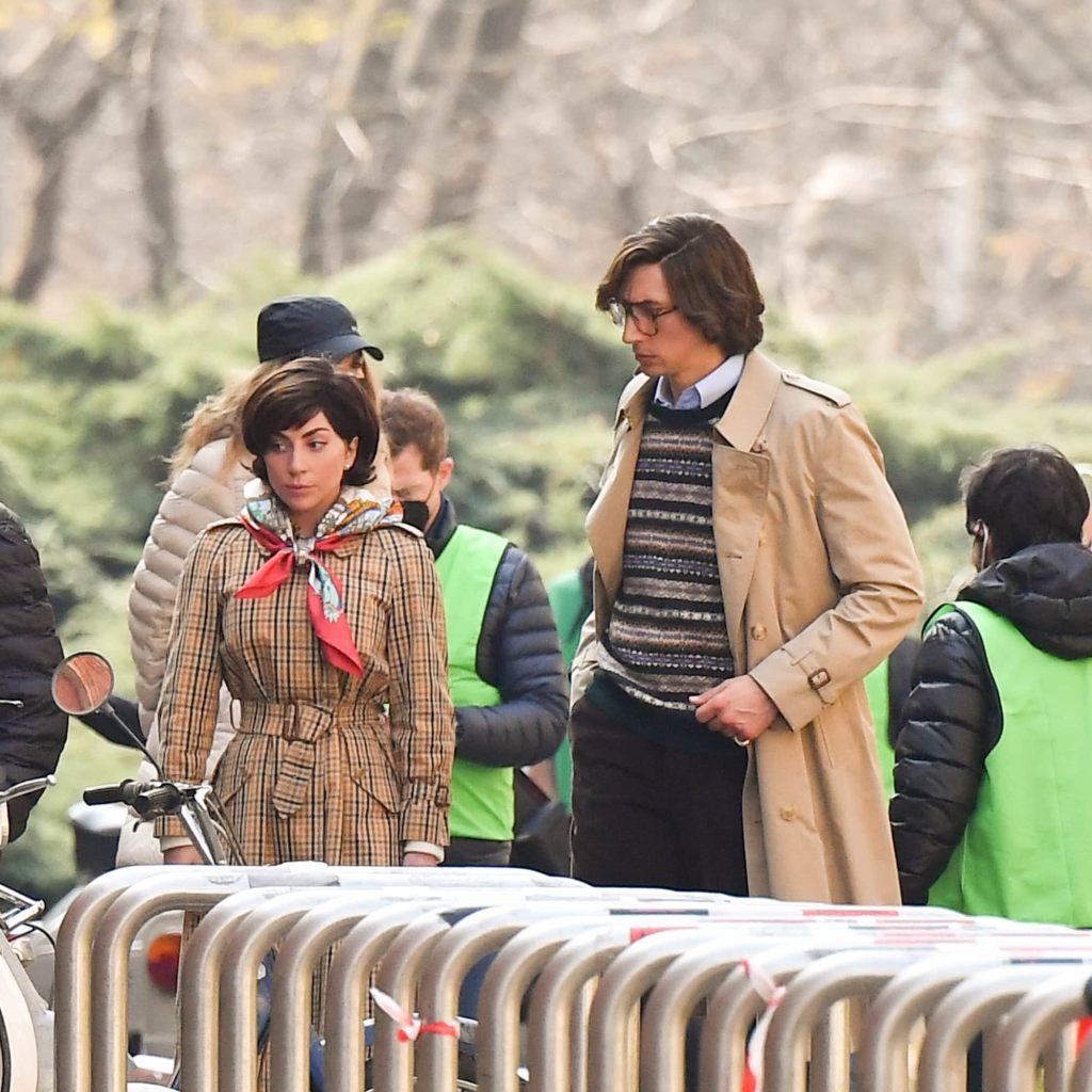 Whew, there’s much to unpack in these set pictures. First, there’s a bespectacled Driver wearing the sh*t out of a chunky knit sweater á la Chris Evans in Knives Out. Then you have Gaga giving her best Ally Maine in Italy, complete with brunette hair and gold chains that would make Gen Z quake. Shooting continued in Milan on March 10, where Gaga was pictured seemingly doing something shady in character while Driver was simply minding his business in the same market. You know Gaga’s character means business with that feathered hair and fur coat.