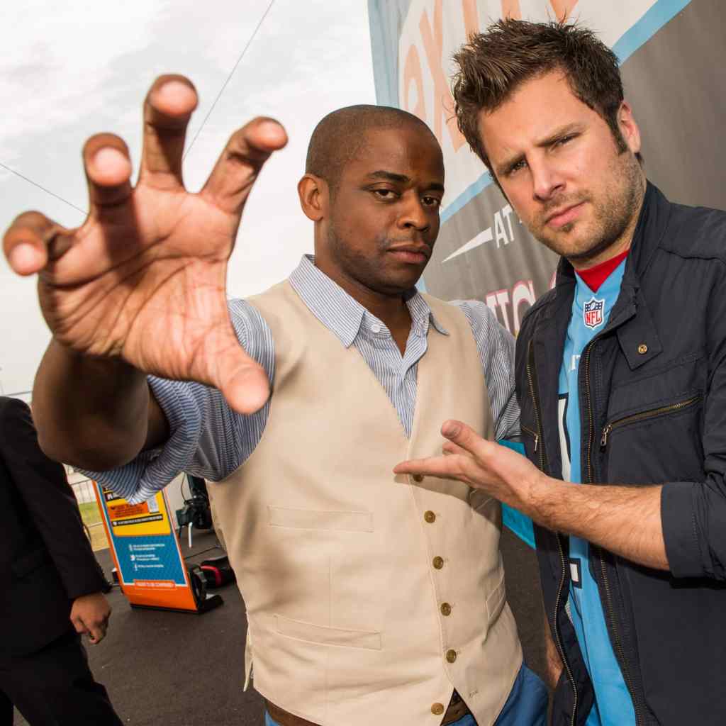 It’s been six years since USA Network’s Psych went off the air, but the friendship between the show’s stars James Roday and Dulé Hill is as strong as ever. In fact, sometimes it’s hard to tell where James and Dulé end and their characters Shawn Spencer and Burton Guster begin. This is evident by their witty banter in nearly ever interview they’ve done together. Over the years, the actors have formed a strong bond, with Dulé often calling James his “brother” on social media and James being a groomsman at Dulé and Jazmyn Simon’s 2018 wedding.