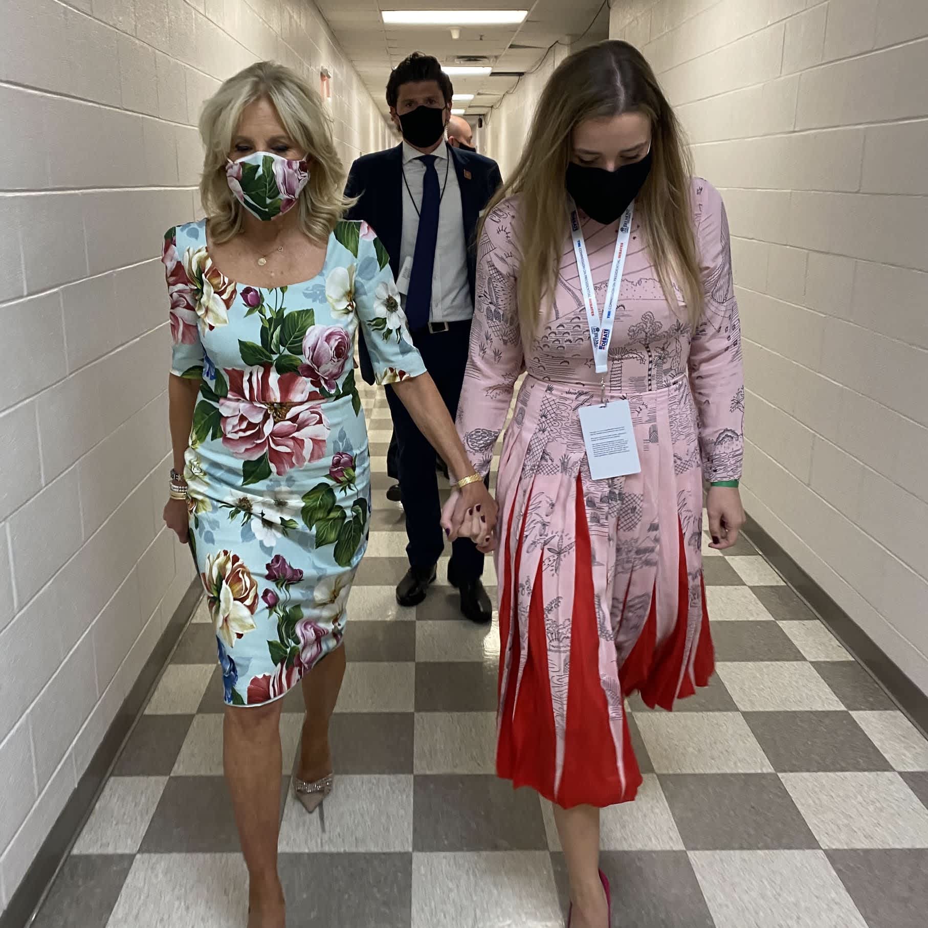 At the previous debate, Jill wore a sustainable Gabriela Hearst dress that sent out a message about climate change, being that Hearst takes careful attention to materials used during her design process. Both the evidence that our environment is suffering and that mandating face masks across the country could have prevented tens of thousands of deaths are scientific facts. We’re not at all surprised that both of Dr. Biden’s debate outfits drew attention to that, because the Biden campaign trusts in science.