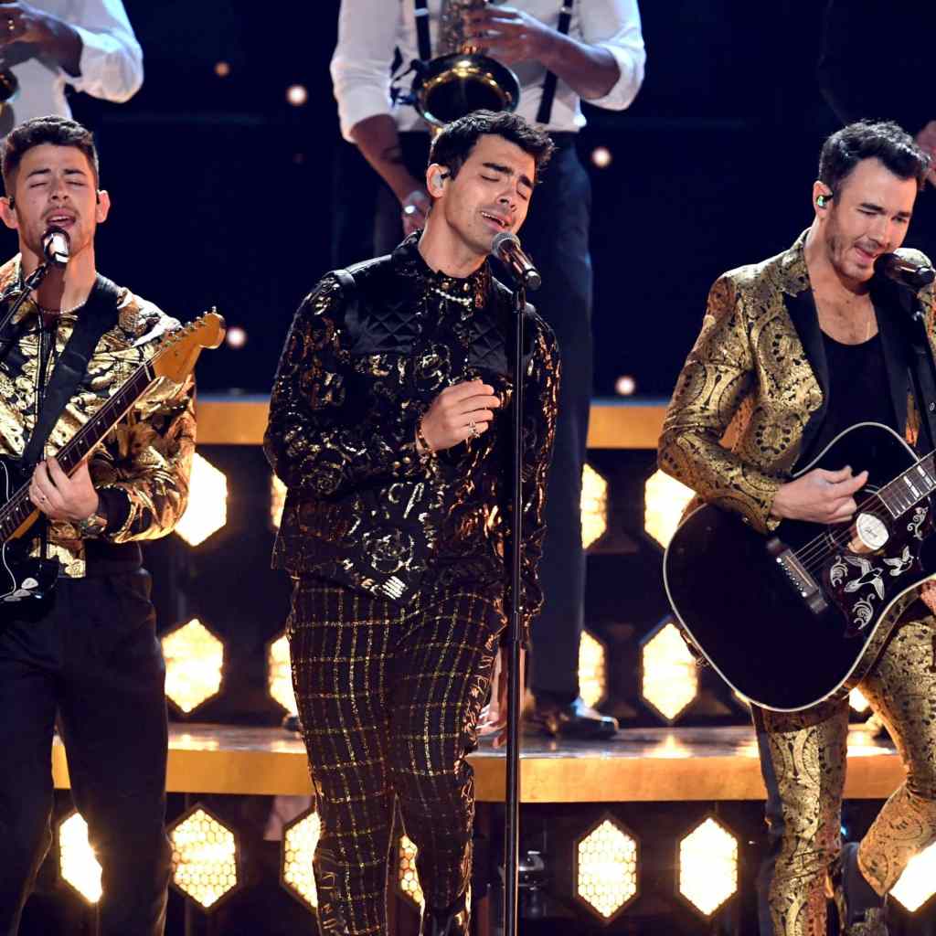 The Jonas Brothers hit the Grammys stage for the first time in over a decade on Sunday night. The brothers, who are up for best pop duo/group performance, sang a new track titled “Five More Minutes” before performing “What a Man Gotta Do.” During a Shazam video, the brothers revealed that the songs would be part of a “forthcoming album.” Did you hear that? Another Jonas Brothers album is in the works! Kevin, Joe, and Nick looked in their element as they rocked out on stage in gold outfits. Naturally, they had the support of their respective wives, aka the “J Sisters,” as they cheered them on in the crowd. Kevin even leaned in to kiss Danielle while making his way to the main stage with his brothers.