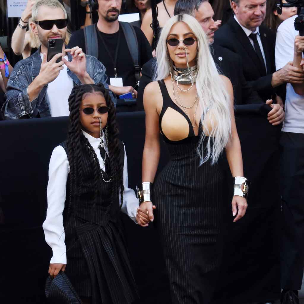 Moments after Kim Kardashian’s buzzy debut on the Balenciaga couture catwalk, the business mogul and her daughter North West caused quite the stir at the Jean Paul Gaultier couture show. The duo matched in pinstripe tailored silhouettes reminiscent of archival Jean-Paul Gaultier looks as if they had set out to recreate the memorable 1992 photograph of the designer and his muse Madonna walking side by side at an amfAR Gala, a similarity pointed out by the Instagram account Diet Prada.