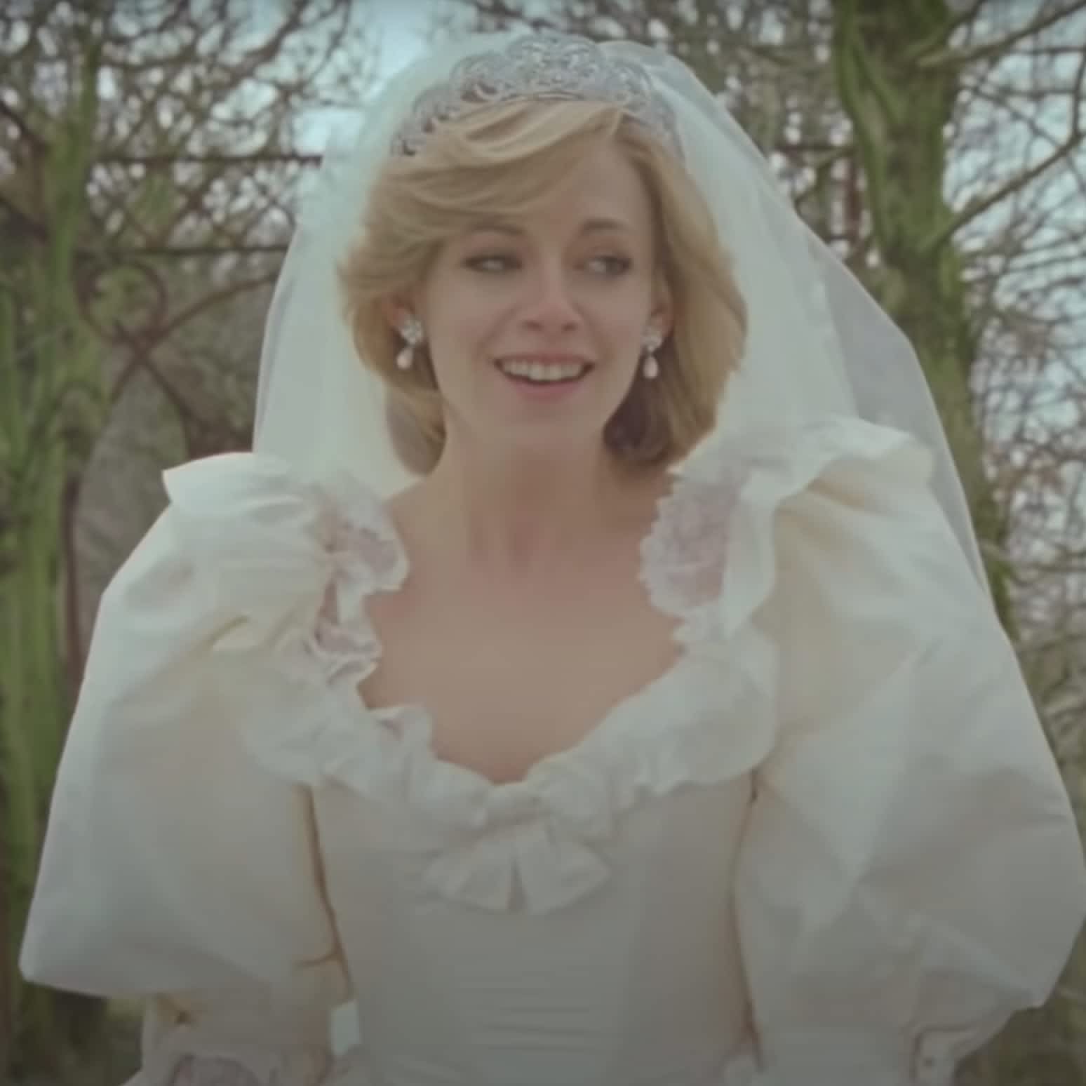 Kristen Stewart Stuns in a Spot-On Replica of Princess Diana's Famous Wedding Dress