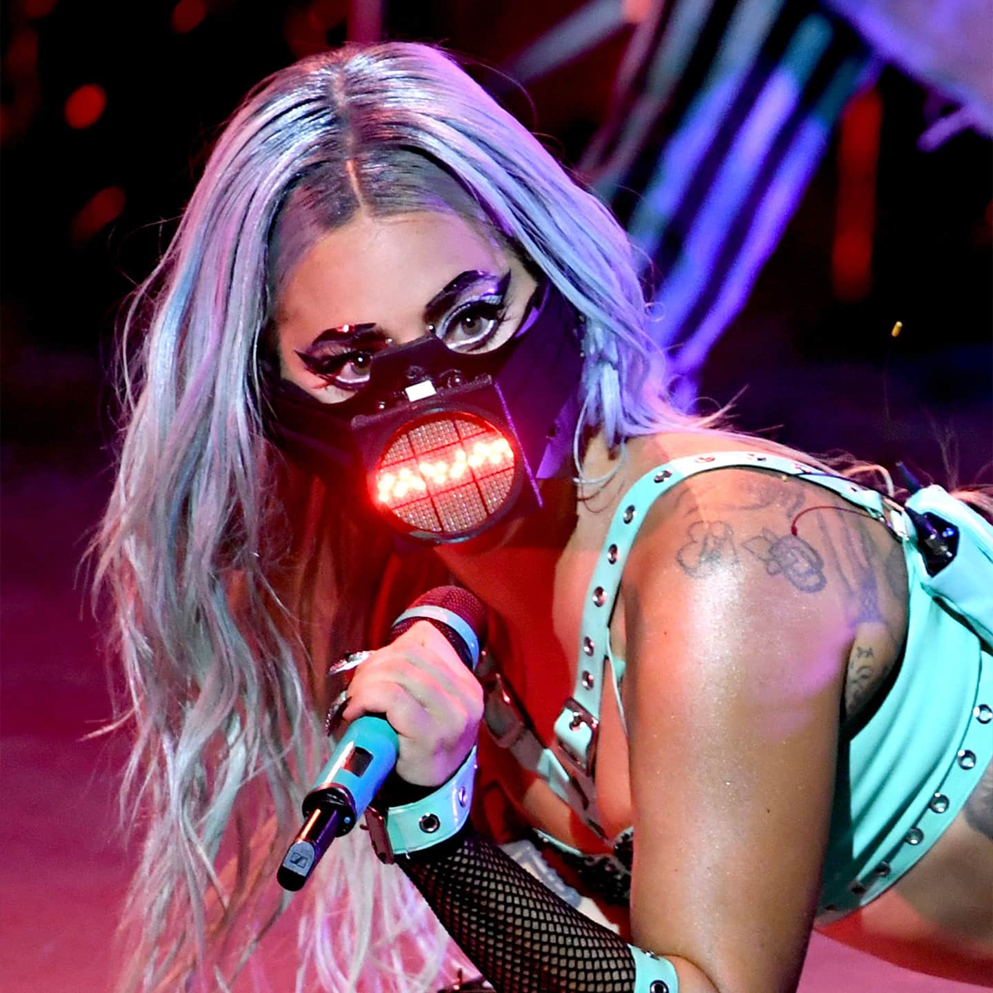 But because she’s Lady Gaga, she of course didn’t wear any old mask. Each of her face coverings matched her statement-making outfits, from a Moon Person-inspired face shield to an electronic mask that lit up to the beat of her performance. The star said it best at the VMAs: “Stay safe, speak your mind, and I might sound like a broken record, but wear a mask. It’s a sign of respect.” Take a closer look at all of Gaga’s fashionable face coverings at the VMAs ahead.
