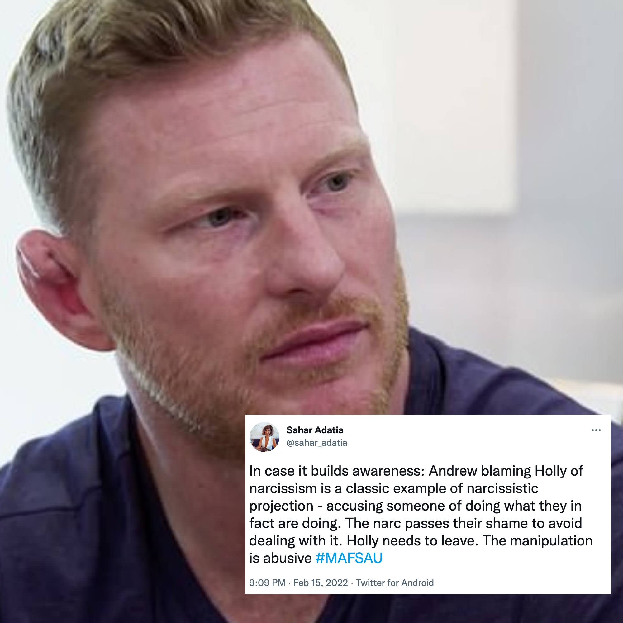 But what was particularly triggering was how Andrew managed to turn everyone else against Holly, through manipulation and lies. To recap, Holly and Andrew arrived at the party separately, and with Andrew arriving first, he told everyone how hurt he was because Holly had ditched him.