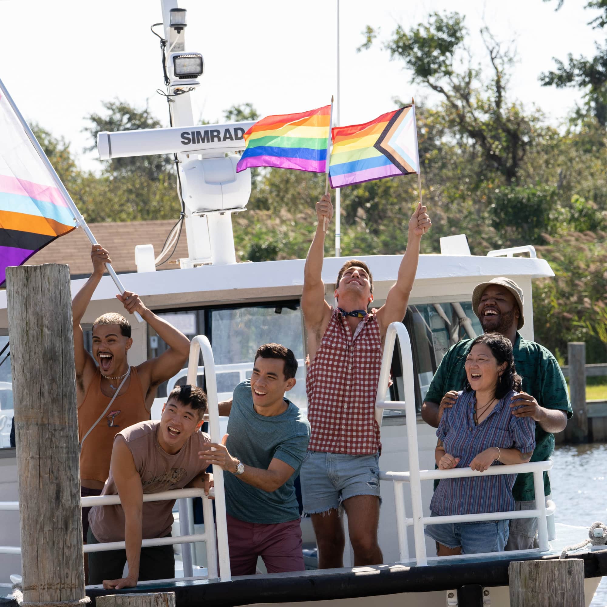 Aaron became Erin. “They didn’t have to change that much,” she says. “And when I got the script, I was absolutely elated. . . . I’ve been going to Fire Island since 2008. It’s a really important place for me, and an important place in gay history.” Filming it, she says, was a blast.