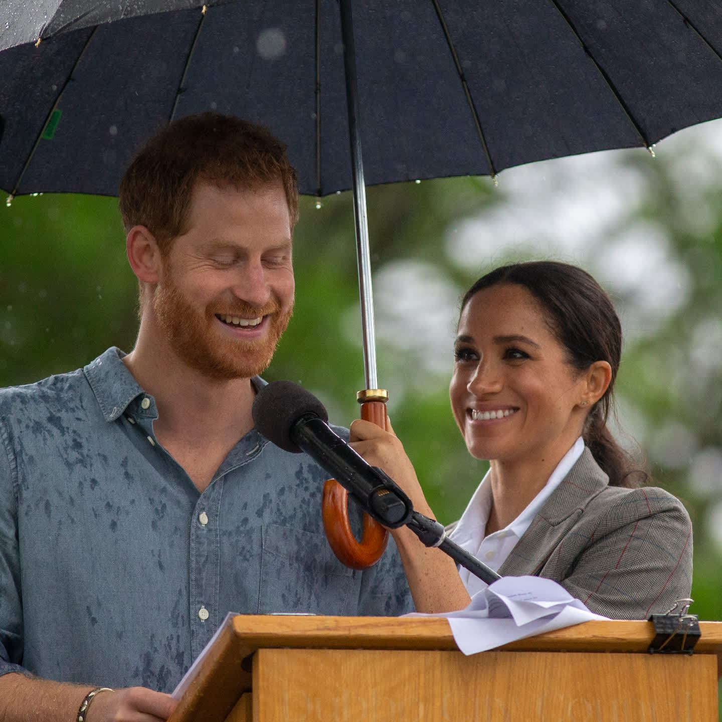 After sharing the most adorable Christmas card ahead of the holidays last year, it’s only appropriate Meghan Markle and Prince Harry sent some equally beautiful thank you notes to match. According to a card shared by Instagram user Gert’s Royal Replies, who collect royal correspondence, their holiday thank you cards feature a beloved throwback photo of the Sussexes during their royal tour back in October 2018. The snapshot captured the sweet rainy day moment where Meghan, who was pregnant at the time, held an umbrella for Harry as he delivered his speech to a crowd in Dubbo, Australia.