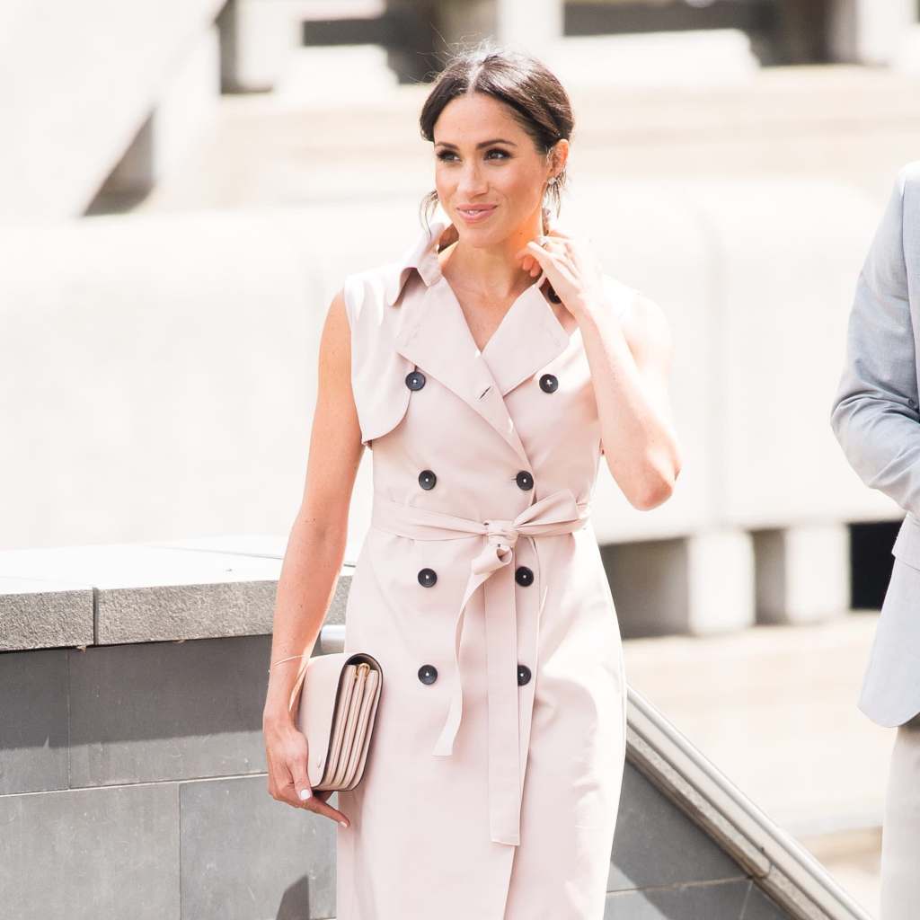 A belted trench-coat dress is one of Meghan’s go-to looks. In July 2018, the duchess wore a pink trench dress by Canadian designer Nonie to visit The Nelson Mandela Centenary Exhibition at Southbank Centre in July 2018.