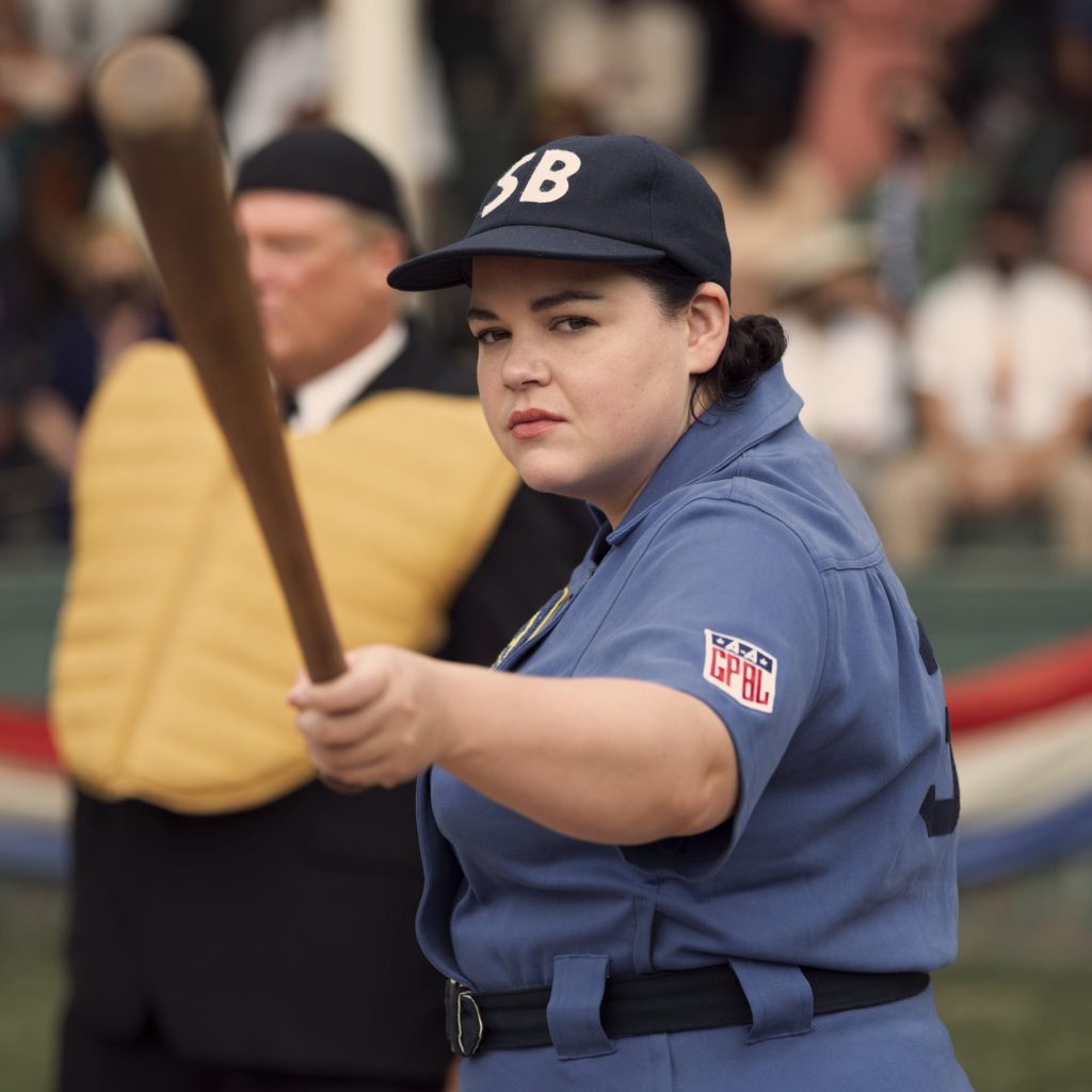 Ultimately, Field’s character, Jo, is pretty different from O’Donnell’s Doris. Jo, who – like many of her teammates – is queer, is one of the Rockford Peaches’ main stars, and she hits monster home runs all over the ballpark. “To get to play a fat athlete is so empowering,” Field says. “She’s not the slow one on the team, or the person who’s not that good. She’s the star. She is so good. And I just felt so much pride being able to inhabit that, and to be able to put the vision of that on camera.”
