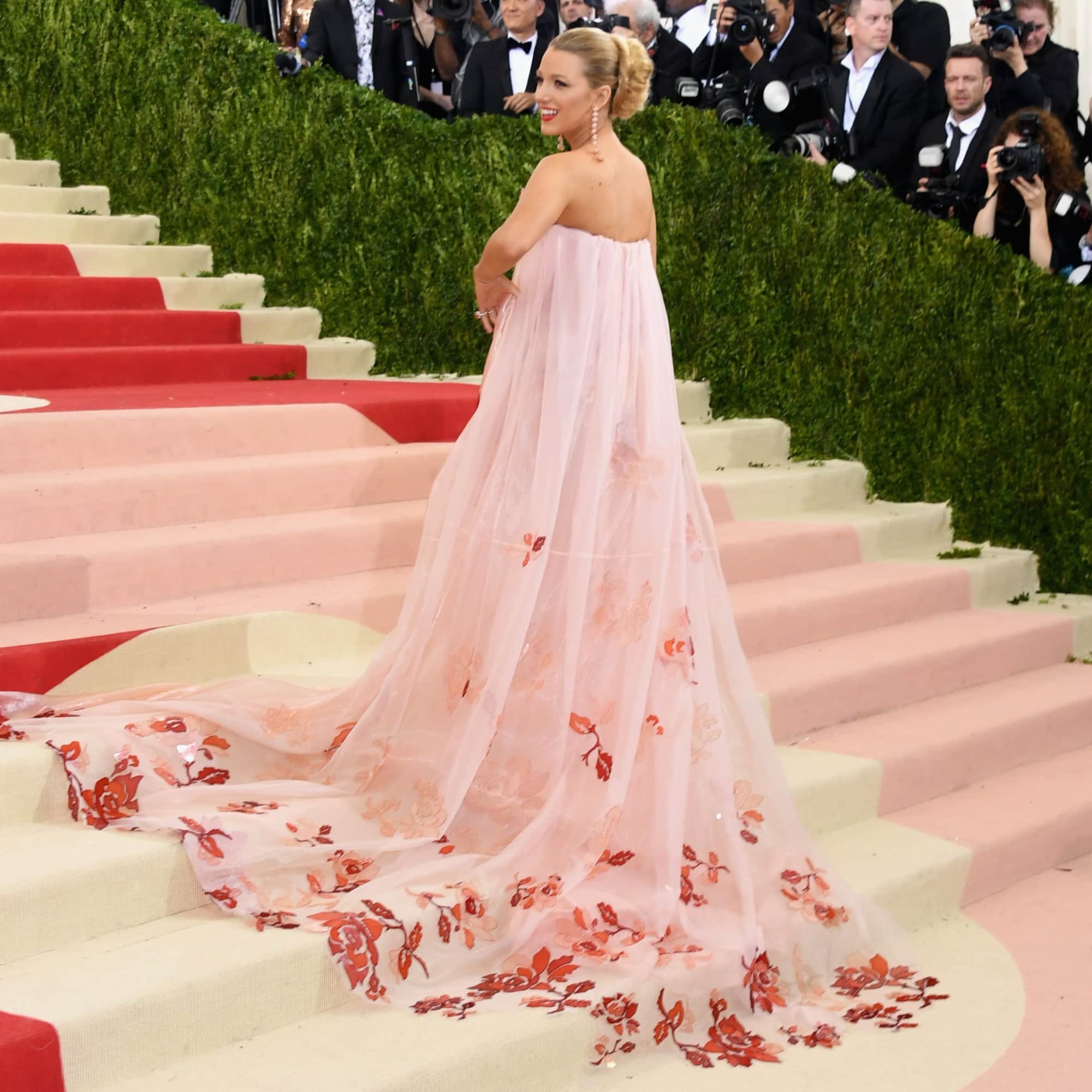 For the 2016 “Manus x Machina: Fashion in an Age of Technology” theme, Blake wore a pink silk floor-sweeping Burberry number.