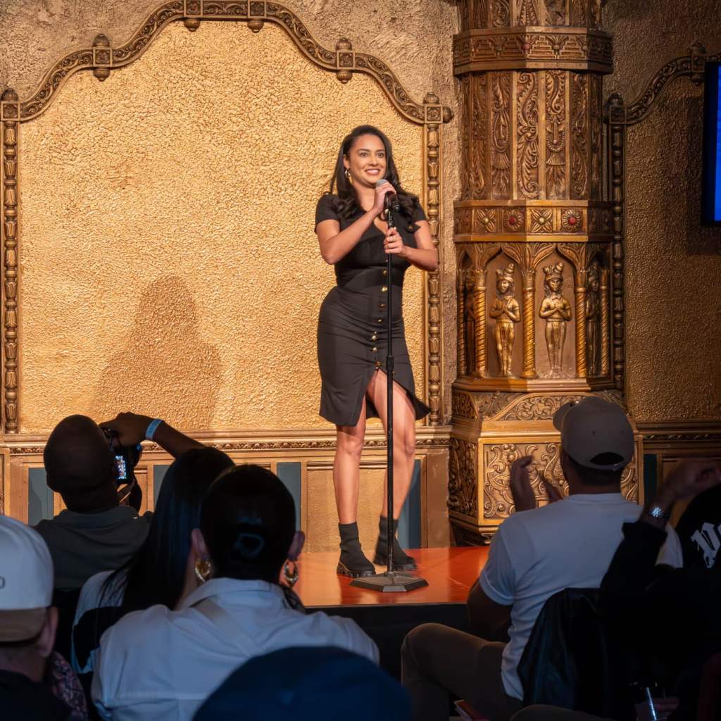 The show opened up with a special musical performance by Dominican bachata artist Jae Camilo and included an impressive lineup of Dominican comedians, from up-and-coming stars like Julio Diaz, Mr. Nuevayol, and Dee Nasty to established comics with HBO Max specials, including Aida Rodriguez and Ian Lara. Mora was the evening’s host and Merci also had her own stage time, making it a jam-packed lineup filled with eight talented Dominican comics that sold out the show within weeks.