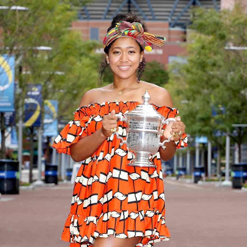 Naomi Osaka is a two-time US Open women’s singles champion, and her celebratory postgame outfit would put anyone in a winning mood. On the day following her final match, the 22-year-old athlete posed with the iconic silver trophy in an orange patterned dress and a colorful head wrap. “You already know I had to bring out the headwrap for this one,” she tweeted on Sunday, alongside a picture from the photo shoot.