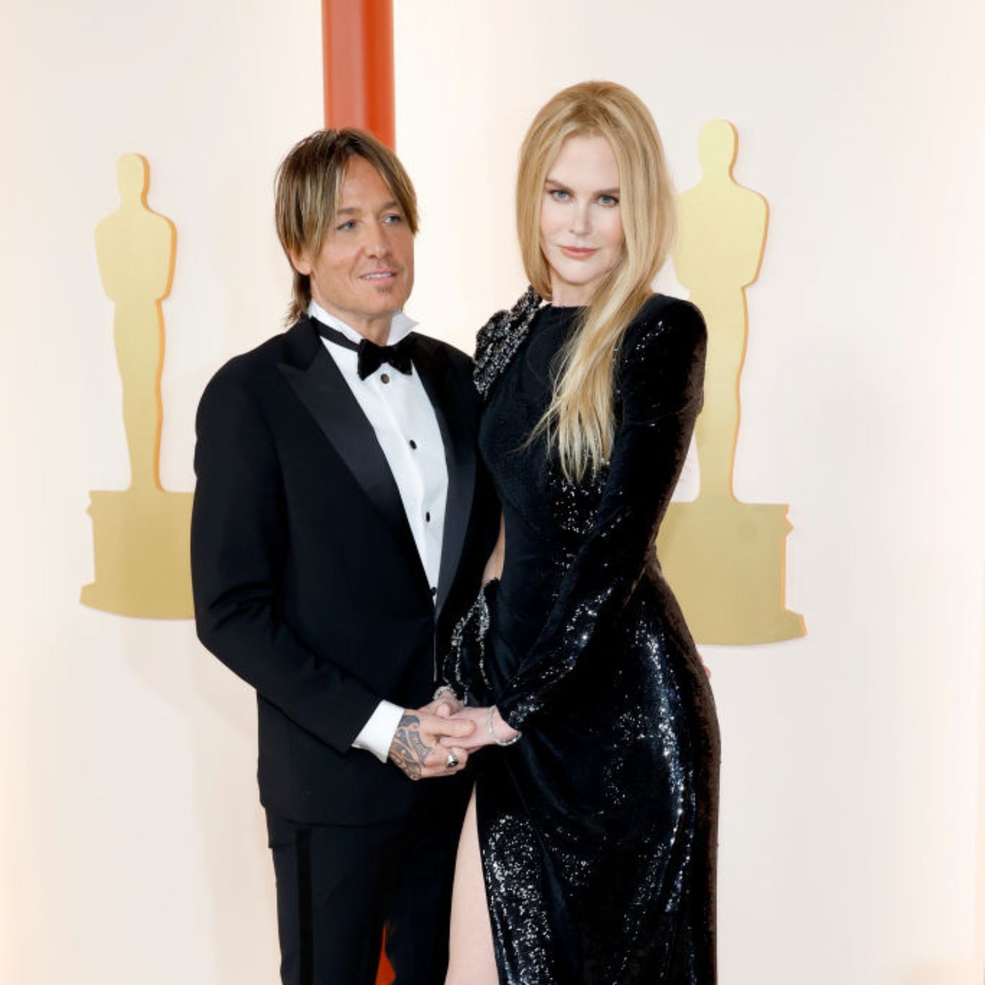 Nicole Kidman and Keith Urban turned the 2023 Oscars into their own PDA-filled date night. The actor and her musician husband walked the red carpet together at the Dolby Theatre on March 12, sharing several passionate kisses, holding hands, and hugging while posing for the cameras. Kidman dazzled in a sequined Armani Privé gown with a striking leg slit, while Urban kept things classic in a black tuxedo. The couple, who have been married since 2006 and share two daughters, also snapped photos with best actress nominee Andrea Riseborough and “The Fabelmans” star Sam Rechner.