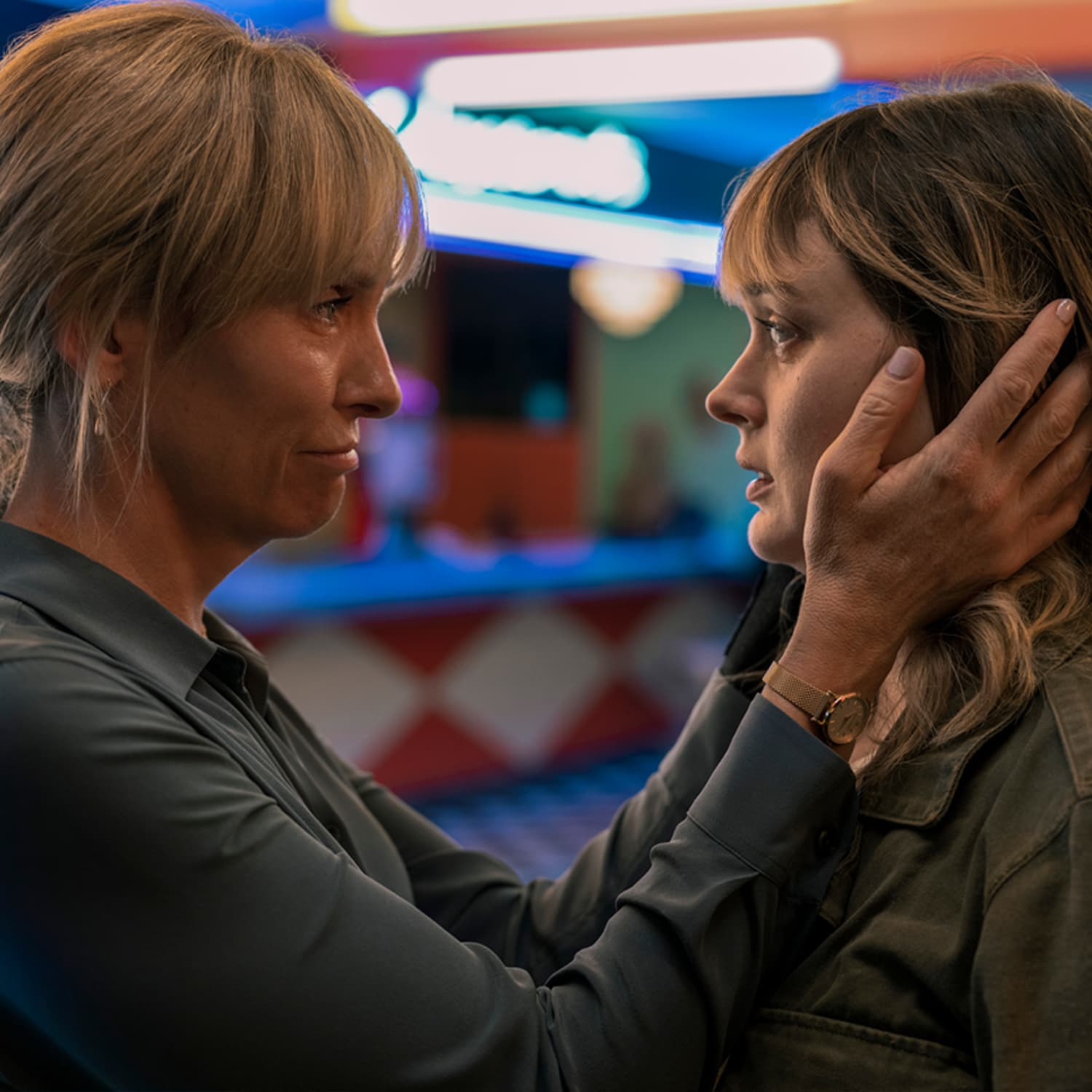 BH: The first scene I shot with Toni was when we were reunited [in the first episode] – the second diner scene, if you will. That was a lot, because I was so nervous to work with Toni for the first time. Toni has spoken about this a bit in interviews, about how exhausting it is when you’re trying to hold something back that you unconsciously want to feel . . . the stakes are high all the time, and how do you find the nuance in that?