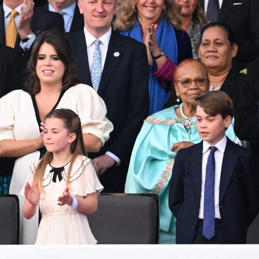 For the occasion, Charlotte, 8, wore a white dress with an oversized scalloped collar with her hair braided in a half up-do, while George, 9, wore a dapper navy suit and tie. They sat in between their parents, the prince and princess of Wales, the latter of whom wore a red Alexander McQueen trouser suit. As the concert didn’t start until 8 pm UK time, their youngest son, five-year-old Prince Louis, wasn’t in attendance – although he did make quite the impression a day earlier at the king’s coronation ceremony when he made a number of hilarious facial expressions throughout the service. Their uncle, Prince Harry, attended the ceremony, but headed back to the US a few hours later to celebrate his son Prince Archie’s fourth birthday.