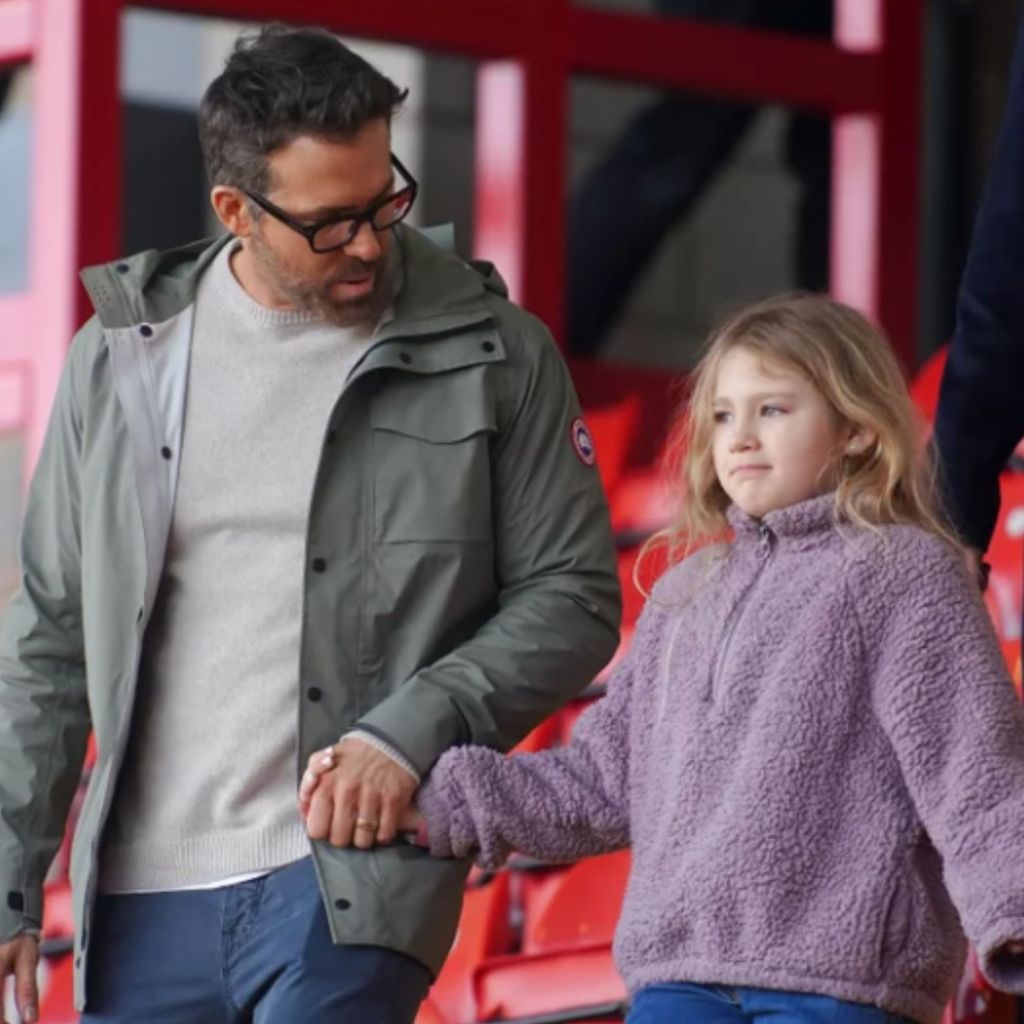 Ryan Reynolds is enjoying quality time with his eldest child before becoming a father of four. The actor traveled to Wales with 8-year-old daughter James to cheer on Wrexham AFC, the soccer team he co-owns with Rob McElhenney, as they played Sheffield United on Jan. 29. The father-daughter pair toured the stadium hand in hand upon arrival and watched the game from the stands with director Shawn Levy, a longtime friend who has worked with Reynolds on “Free Guy” and “The Adam Project” and will direct him again in the upcoming “Deadpool 3.” James looked so grown-up in a fuzzy purple jacket and matching sneakers, while Reynolds wore a beige sweater and a green jacket.