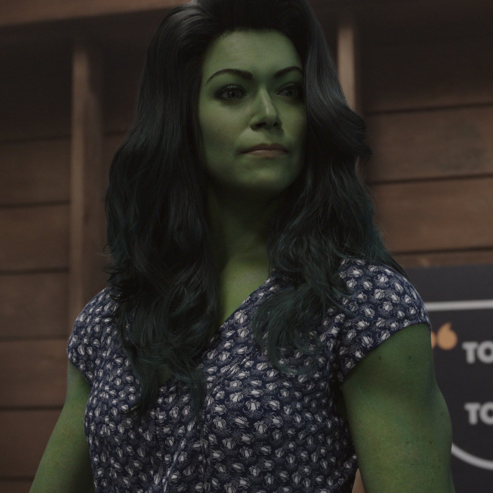Maslany tells POPSUGAR that when showrunner Jessica Gao first told her this idea for the finale, she wondered if the head honchos at Marvel would let them do it. “But I think that’s why I loved it so much,” she says. “It felt so innately ‘She-Hulk.’ And it also felt very Jessica Gao. It also felt very female. . . . To see the system for what it is and to be able to speak on it from an instinctive place, in the tradition of She-Hulk’s irreverence.”