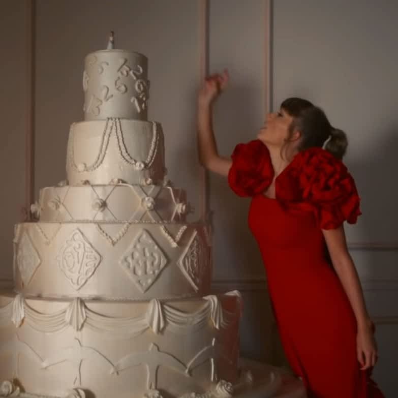 There is so much to decode with this wedding-cake scene. On the top layer, you see the numbers 13 and 26. Thirteen is Swift’s lucky and favourite number, so of course, she worked it into the video as many times as she could. Twenty-six is present because “I Bet You Think About Me” is track 26 on Red (Taylor’s Version). Nov. 26 is also a Friday, so it may hint that something else is being released or announced on that day. You can never put it past Swift.