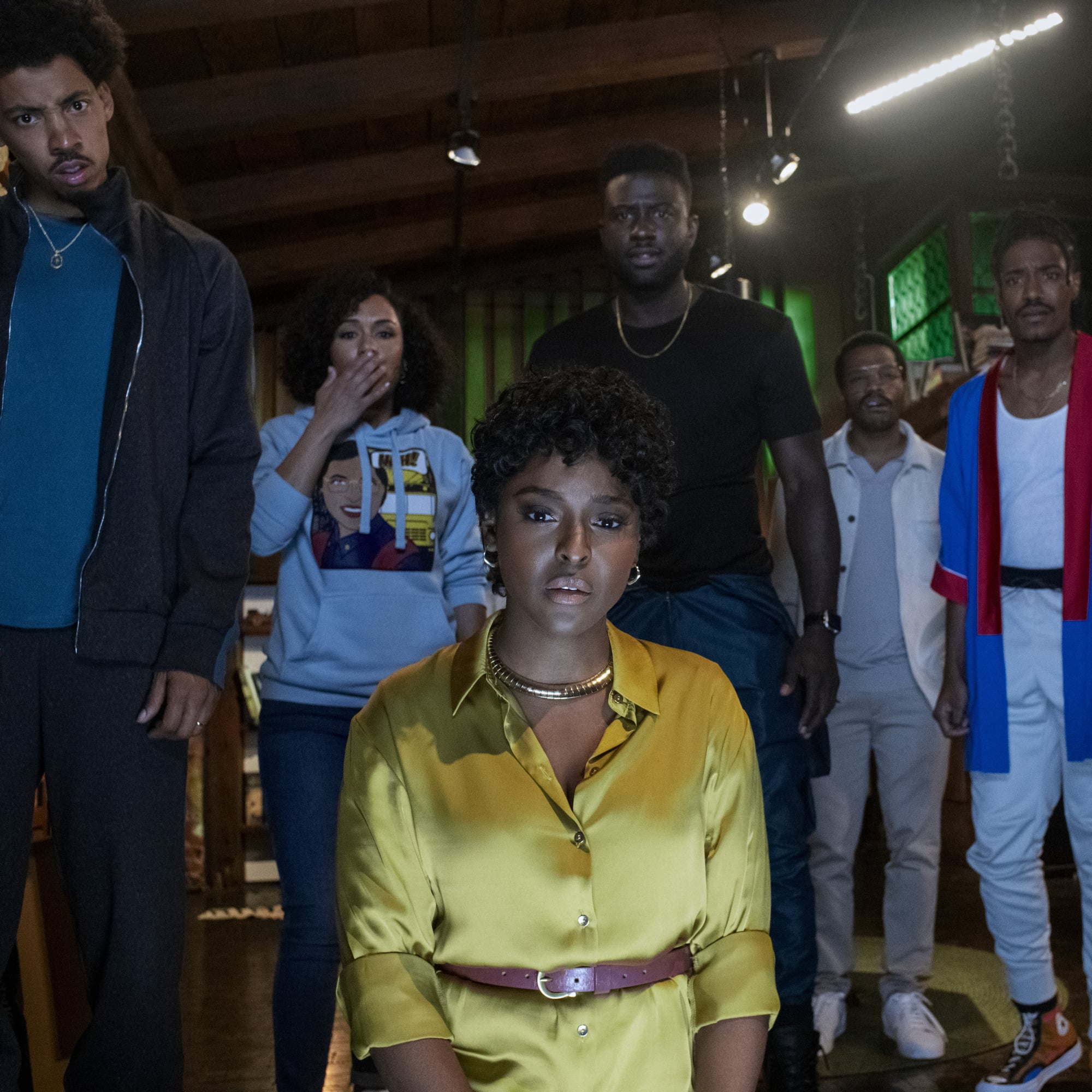 Walls echoes his costar, adding, “For me, it always starts on the page. I’ve been really blessed over these last few years to have material that I think is always saying something. . . . Coming through the Black Lives Matter movement, coming out of the pandemic and then reading this, I was like, ‘Oh, this is so smart. This is so on time. This is so informed. It’s from Black writers. It has a point of view.’ So I was just proud to be a part of it. Every time I watch it, every time I hear someone talk about it, there’s just an overwhelming sense of pride that comes from being a part of it.”