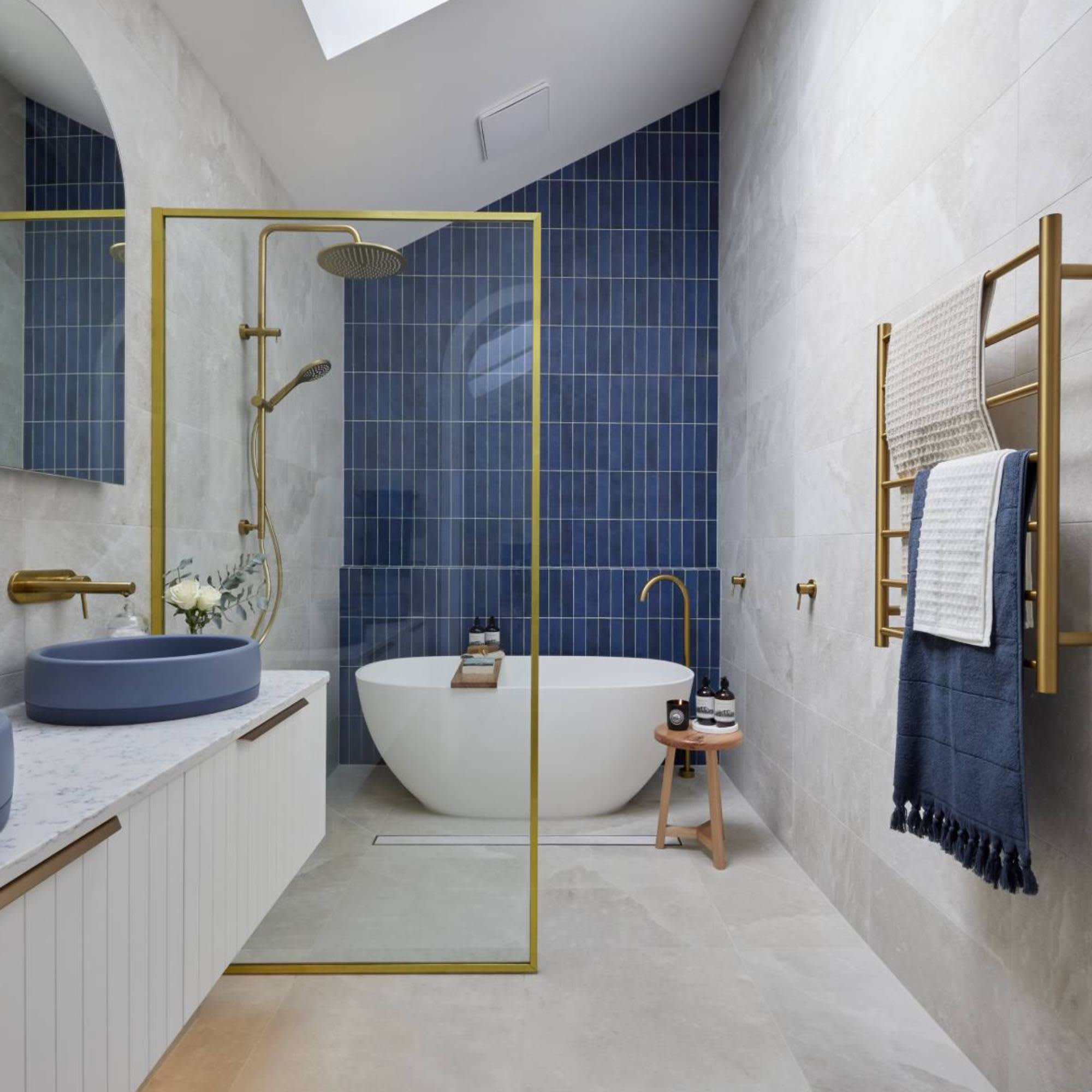 Kirsty and Jesse’s Hampton themed bathroom was a breath of fresh air, with the judges falling in love with the tap selection. However, they were criticised for their shower screen which was far too low and the bath tap which was loose.