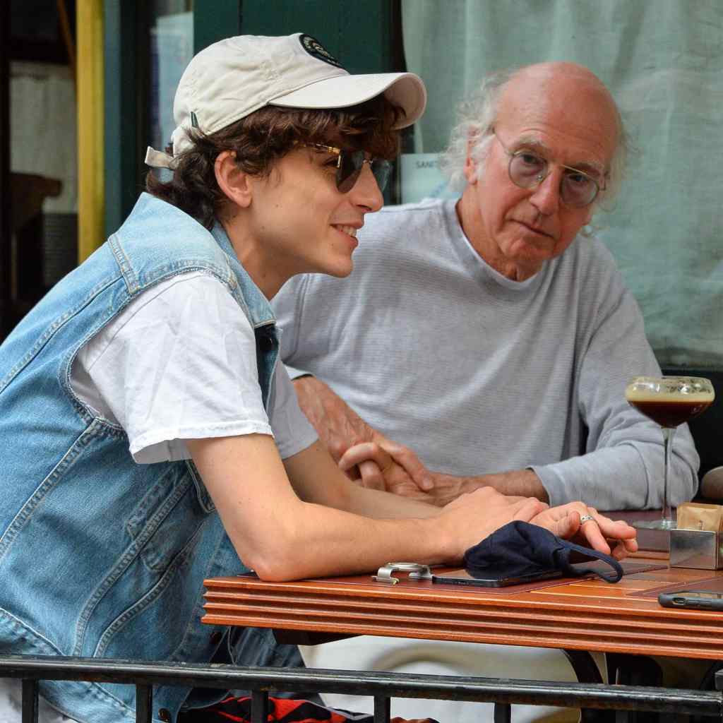 Never have I wanted to be a fly on the wall more than when photos of Timothée Chalamet enjoying lunch with Larry David surfaced. The Dune frontman and the Curb Your Enthusiasm legend were spotted dining at Sant Ambroeus in New York City on Tuesday afternoon – Timmy in a denim vest and flame-adorned basketball shorts, and Larry in a gray long-sleeved tee and his signature Oliver Peoples glasses. Seeing as my invitation for the meetup was tragically sent to the wrong address, I’ve been left with no choice but to bask in the FOMO and, of course, hypothesise on every detail surrounding their unexpected outing. Some call it overanalysing celebrity paparazzi photos for no apparent reason; I call it keeping the Timothée Chalamet hive well-fed.