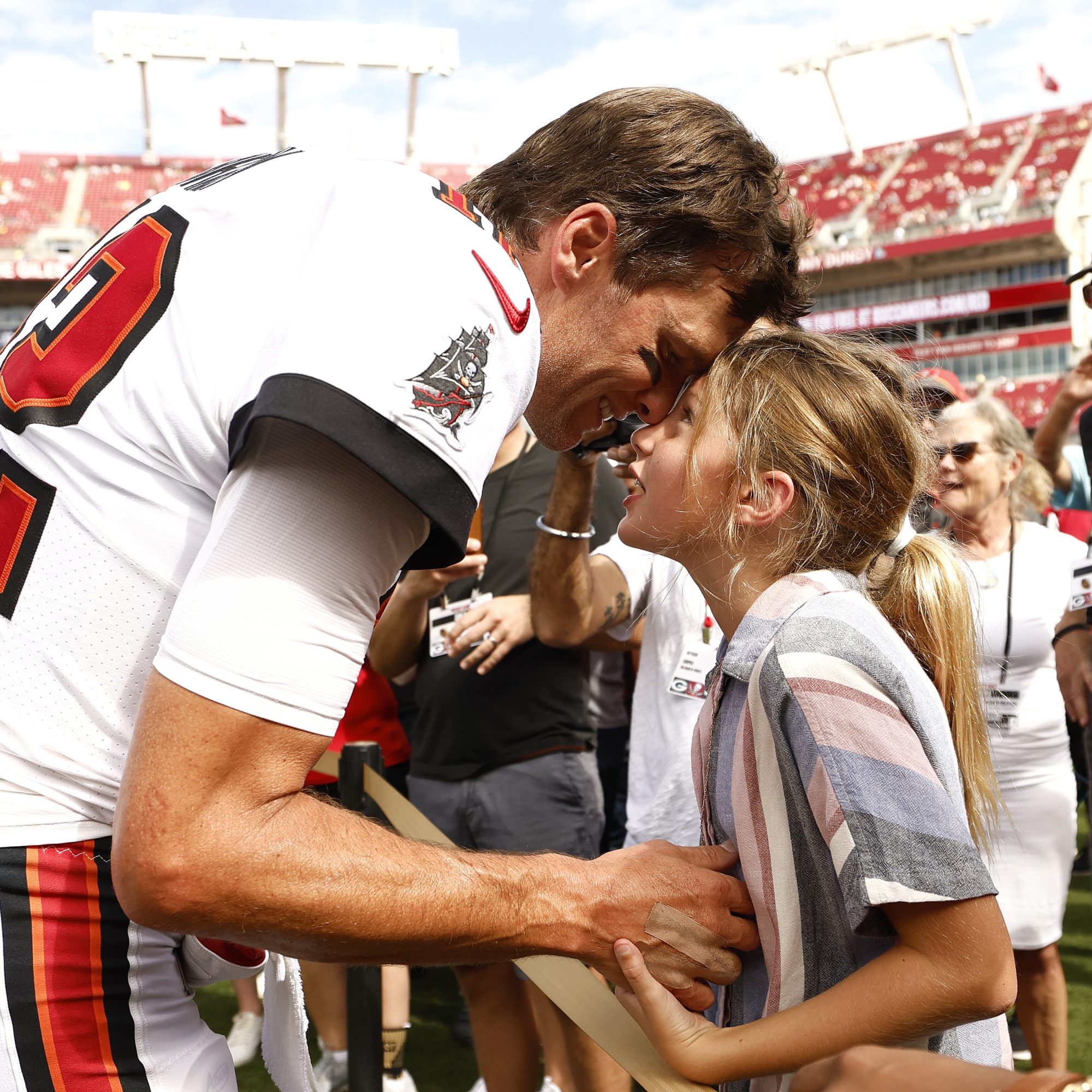 - Tom Brady Hugs His Kids on the Sidelines of His First NFL Home Game of the Season