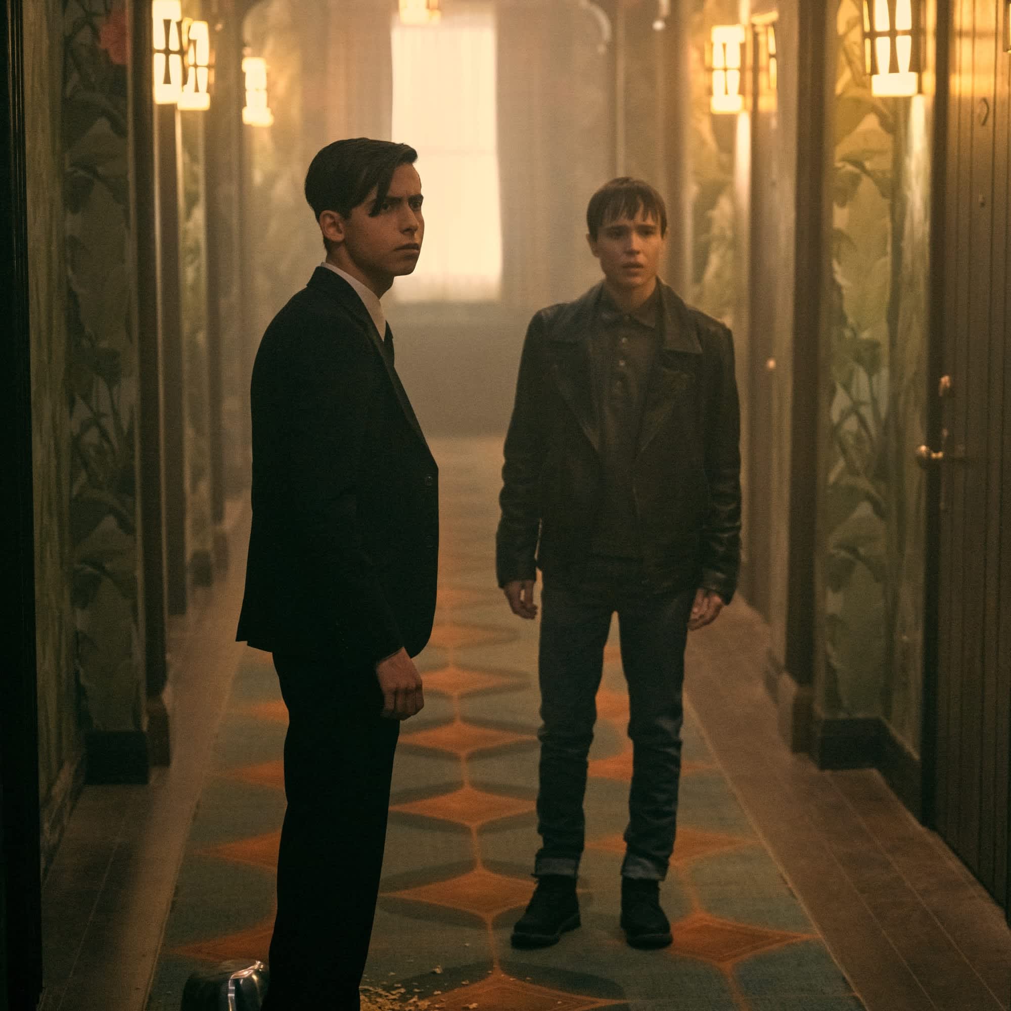 Hotel Oblivion, the sanctuary that the Umbrellas have called their home all season, houses a doorway in the White Buffalo Suite that transports anyone who walks through it to a roach-infested (but otherwise charming) version of the same hotel in an alternate universe. Empty and ominous, the hotel houses guardians protecting a device that Reginald believes can stop the apocalypse. He’s not wrong. He does, however, also attempt to kill Klaus by locking him in the universe that’s collapsing around them (though it doesn’t work thanks to Klaus’s newly refined abilities to come back to life after death).
