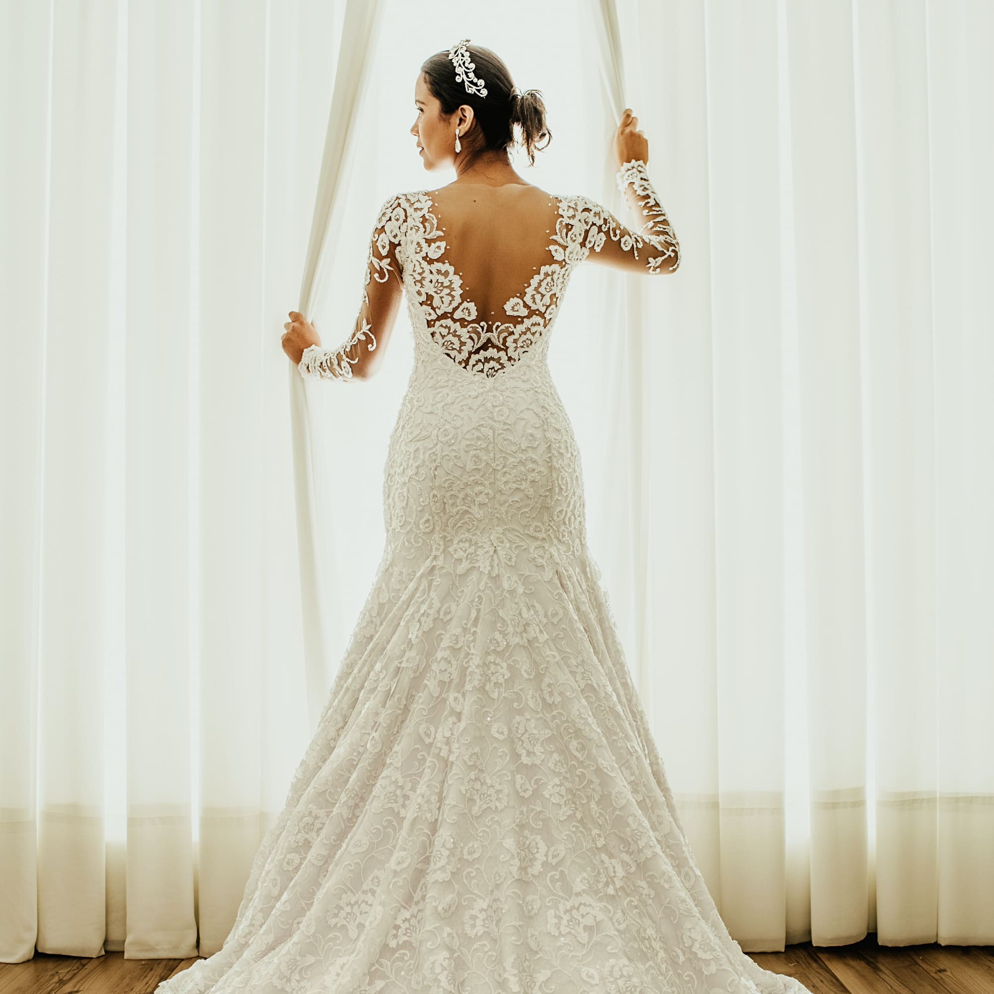 Once you have your dress covered in a breathable cotton fabric, where should you put it? Lindsey recommends a dry, dark place, like under your bed. Even though your closet may be considered dark and dry, hanging your dress isn’t advised. “Storing your gown lying down will help relieve pressure from the straps and keep it intact until the big day!” Additionally, if there are heavy embellishments on your gown, the pressure of those elements would be alleviated as well.