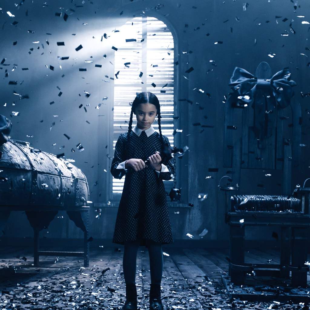 Karina Varadi is the 10-year-old actor who took on the younger version of the titular Wednesday Addams, filming flashback scenes from Wednesday’s childhood. Varadi, who is also a dancer, appears to be Ortega’s mini-me, posing with her counterpart in a matching polka-dot costumes, long black braids and all.