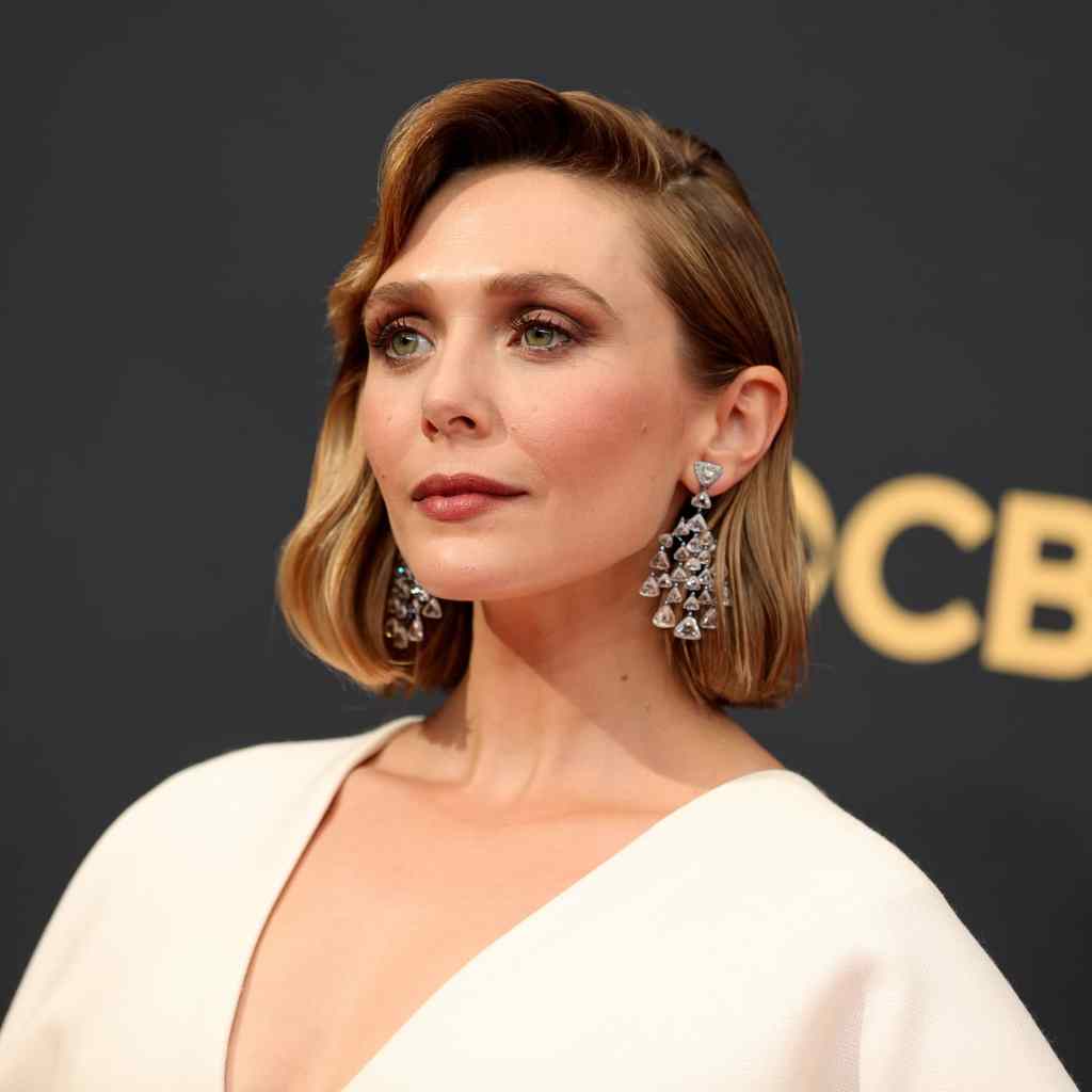 Elizabeth Olsen looked like a dream on the red carpet at the 2021 Emmys. The WandaVision star showed up wearing an all-white gown by The Row, her sisters Mary Kate and Ashley Olsen’s brand, and she topped off the chic ensemble with a freshly chopped bob haircut and 1940s-inspired side-swept bangs.