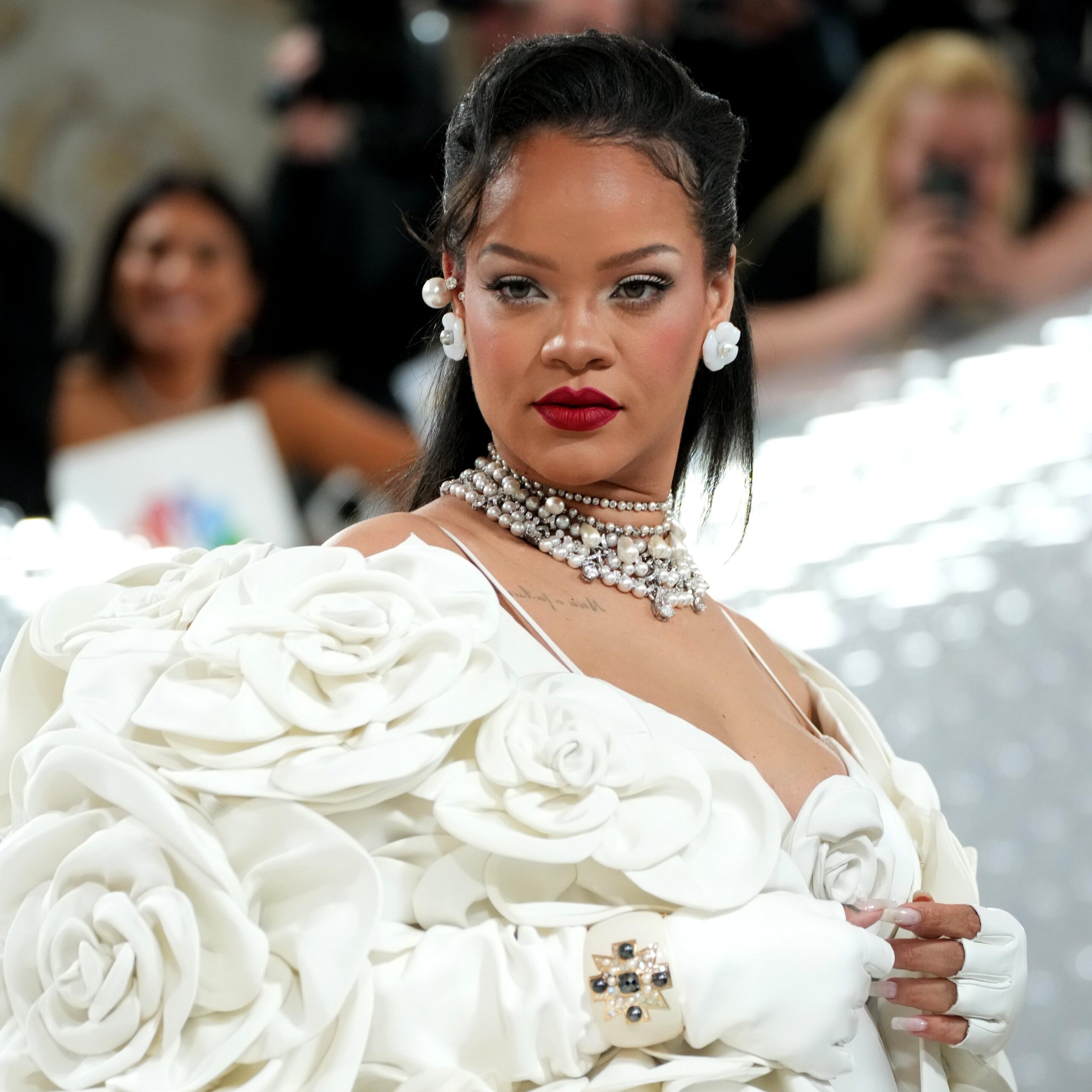 Rihanna was quite literally “mother” at the Met Gala, arriving alongside partner A$AP Rocky with their second child in tow. The “Umbrella” singer wore a bridal white gown with a flower-covered hooded coat that draped over her baby bump.