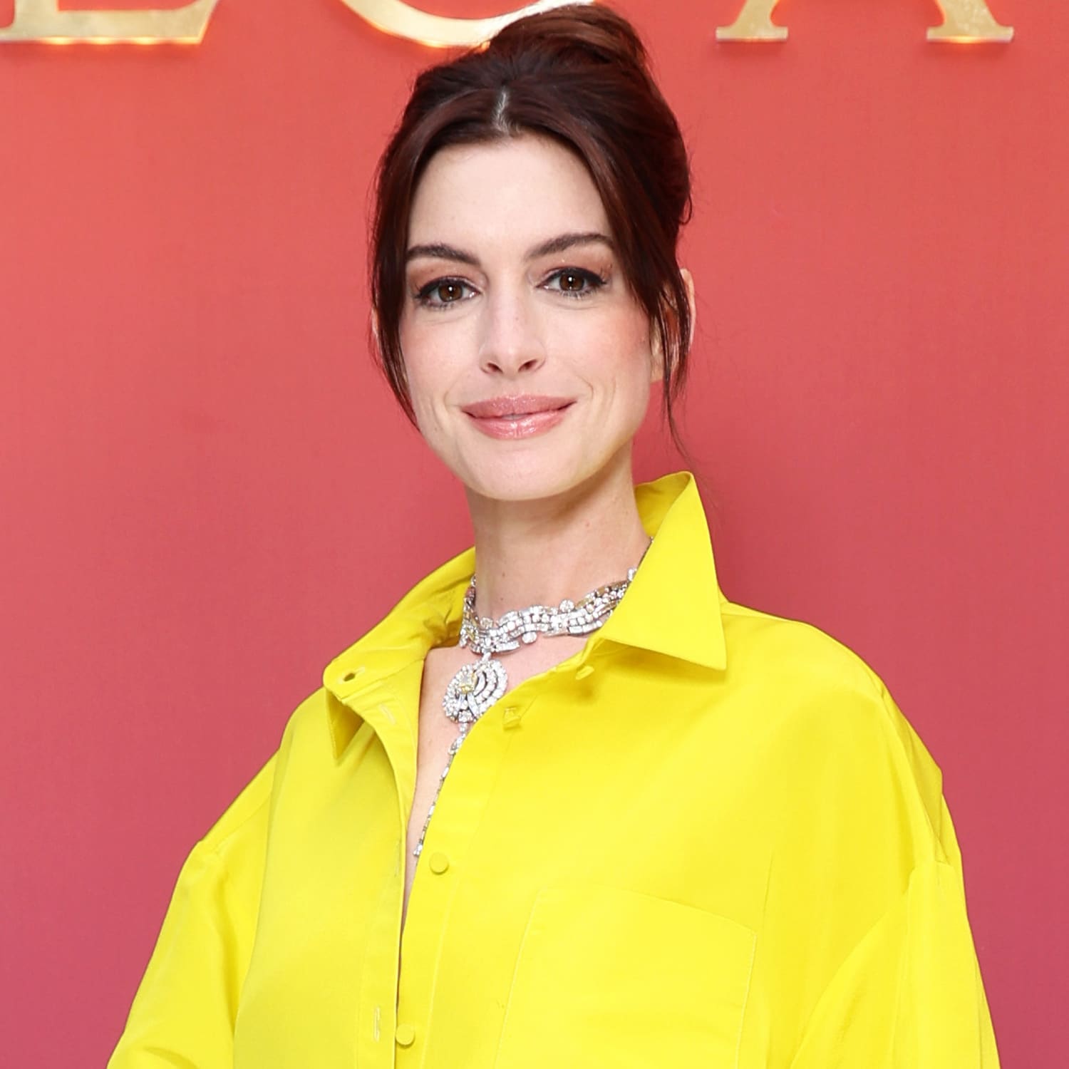- Anne Hathaway Hits the Red Carpet in a Massive Diamond Necklace and Mini Shorts