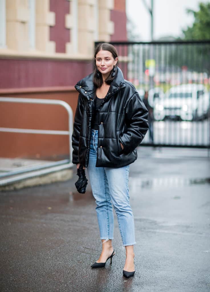 Sara Donaldson showed us how to make a puffer jacket look chic in 2018 when she wore a waist-length black coat over cropped jeans and pointed heels outside the Camilla and Marc show.