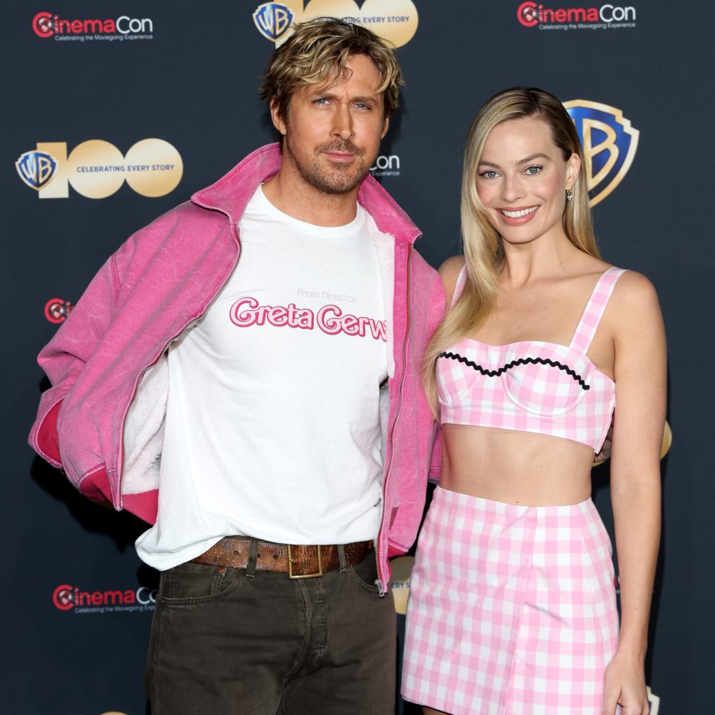 The onscreen couple continues to serve Barbie-inspired nostalgia in real life as they embark on the film’s press tour. At the CinemaCon in Las Vegas on April 25, both Robbie and Gosling appeared in looks true to their characters. Styled by Andrew Mukamal, the actress donned a minimal yet striking two-piece set by Prada, similar to her usual Barbie aesthetic. The set consisted of a pink gingham bra featuring black ricrac trim and a matching miniskirt, paired with a gold Chanel ankle bracelet and pink peep-toe mules from Christian Louboutin. Gosling also channeled his inner Ken with a pink-centered outfit that featured a fuchsia suede jacket, a T-shirt that read “From Director, Greta Gerwig” in classic Barbie font, and black jeans with a pair of Clarks.