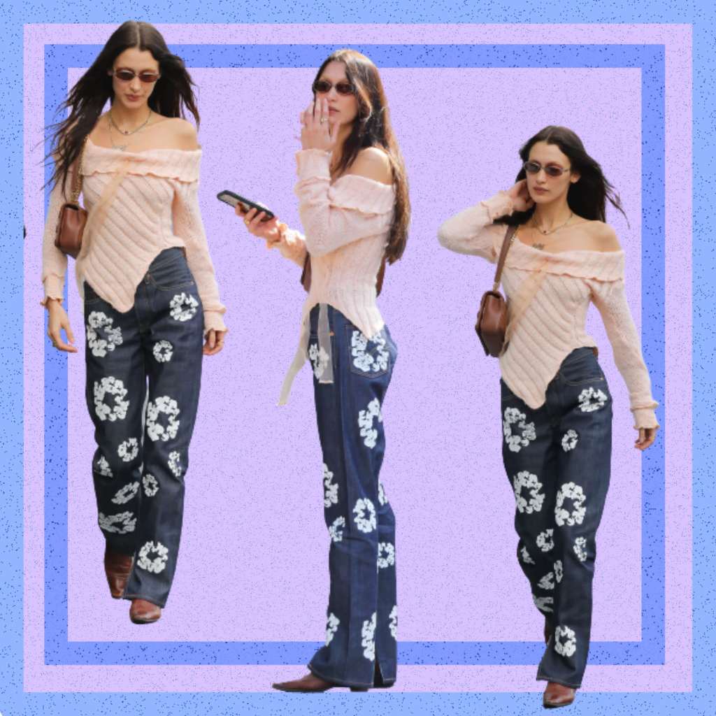 For any effortless daywear, you’ve got to start with a base. In Bella Hadid’s case, it’s often a pair of statement jeans. Whether they have a rough hem, coloured pockets, diamante detailing or painted denim, it’s rare to see her in a “standard” jean.