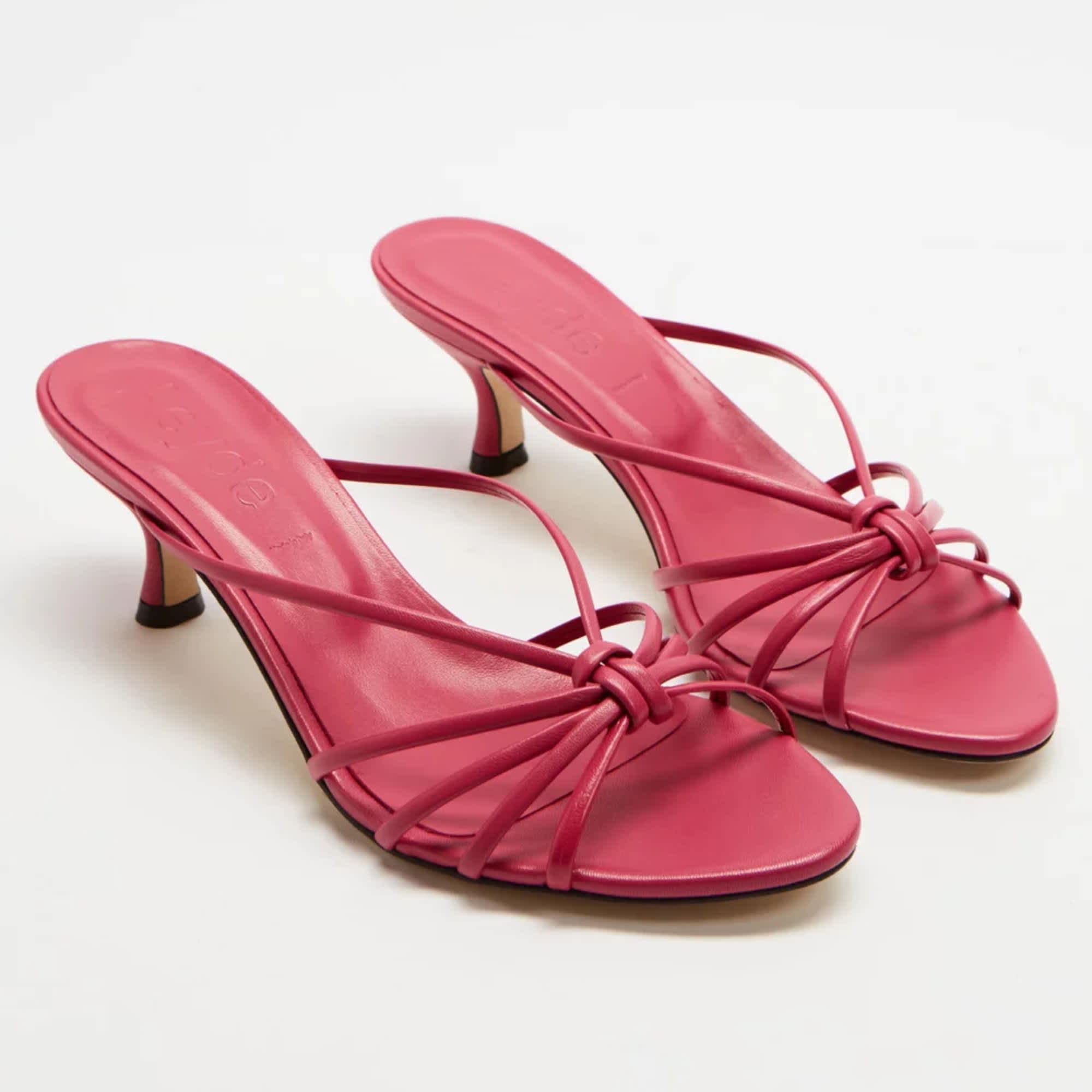 Her high-waisted black pants matched with the black strapless crop are giving huge “You’re the One That I Want” energy, especially when paired with kitten-heeled mules (suss the below video for comparison).