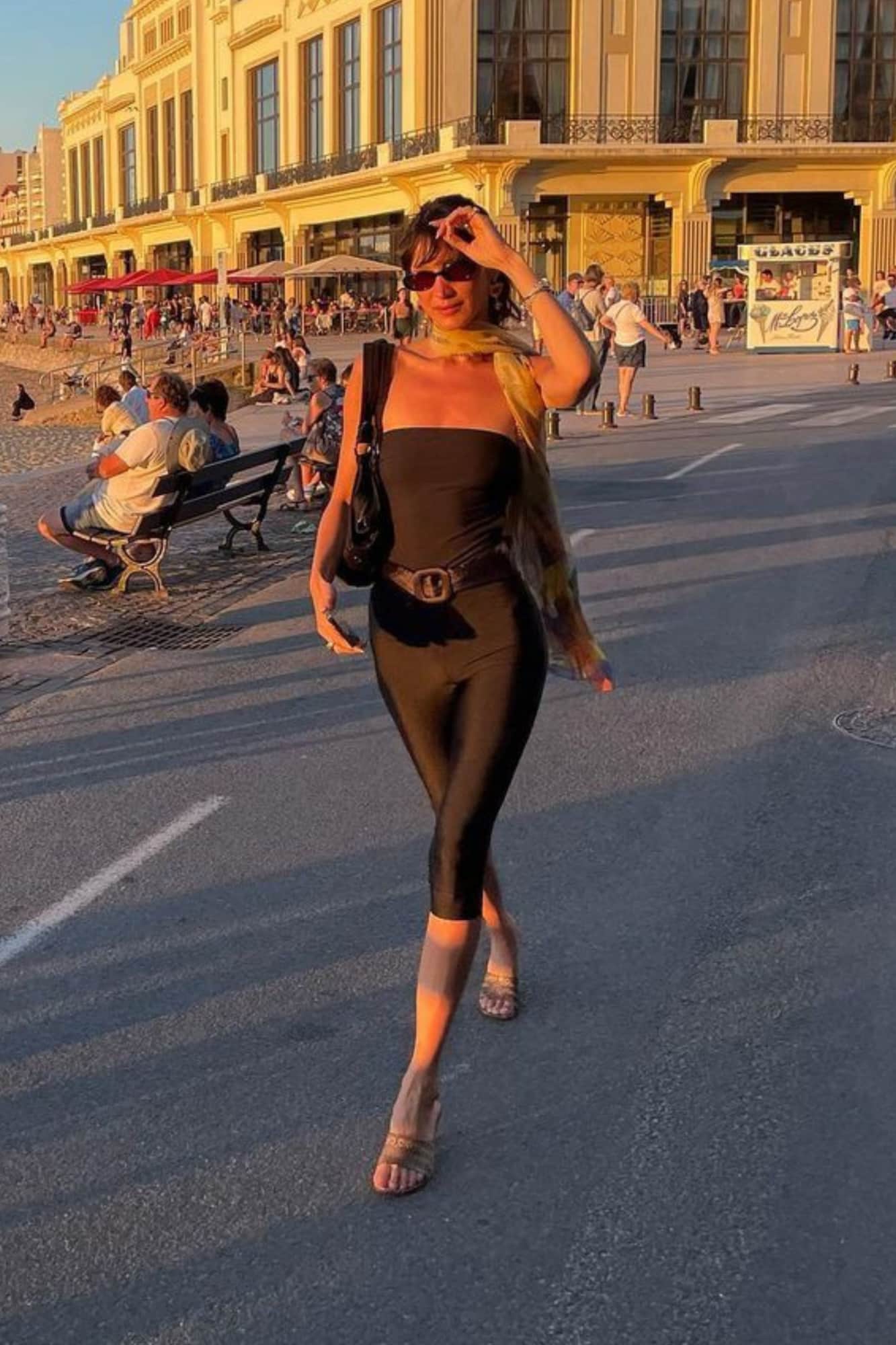 On a recent trip to Biarritz with her boo Marc Kalman, Hadid wore this Sandy (from Grease)-inspired look, with a European twist.