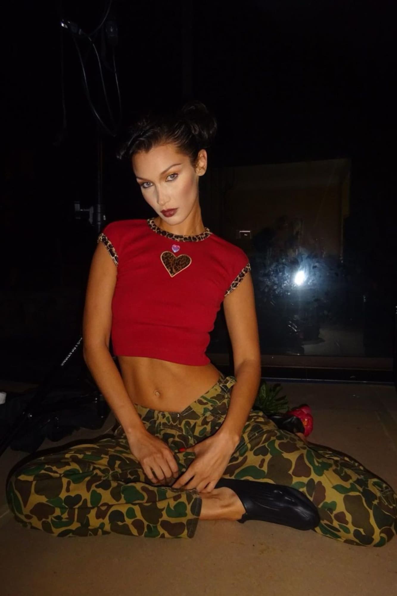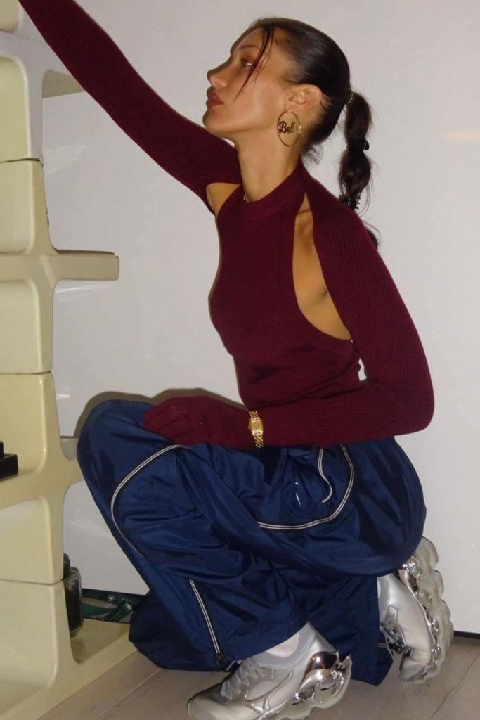 This is a very Bella Hadid look. Although she does embody many different fashion styles, her clear favourite is a mixture of Y2K and current fashion.