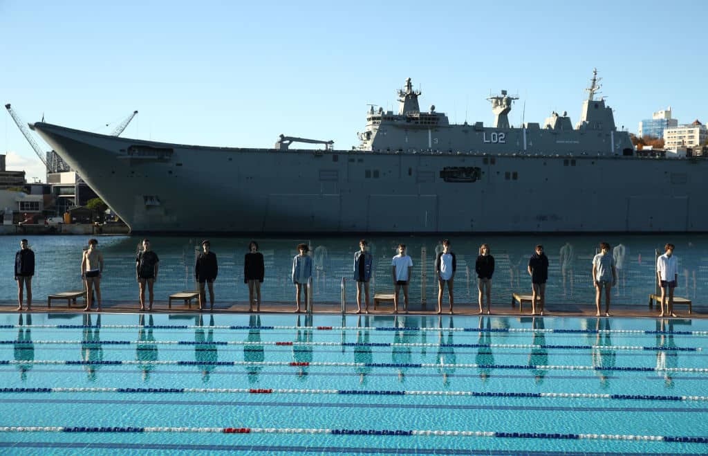 While most Australian Fashion Week shows were held at Sydney Opera House and these days, at Carriageworks in Eveleigh, some are held at off-site venues — like the deck of pools, as was the case with the showing of Katama collection in 2017. Models in the show walked along the sun-drenched pool deck of Andrew Boy Charlton Pool, against a backdrop of several ships parked in the Naval Yard.