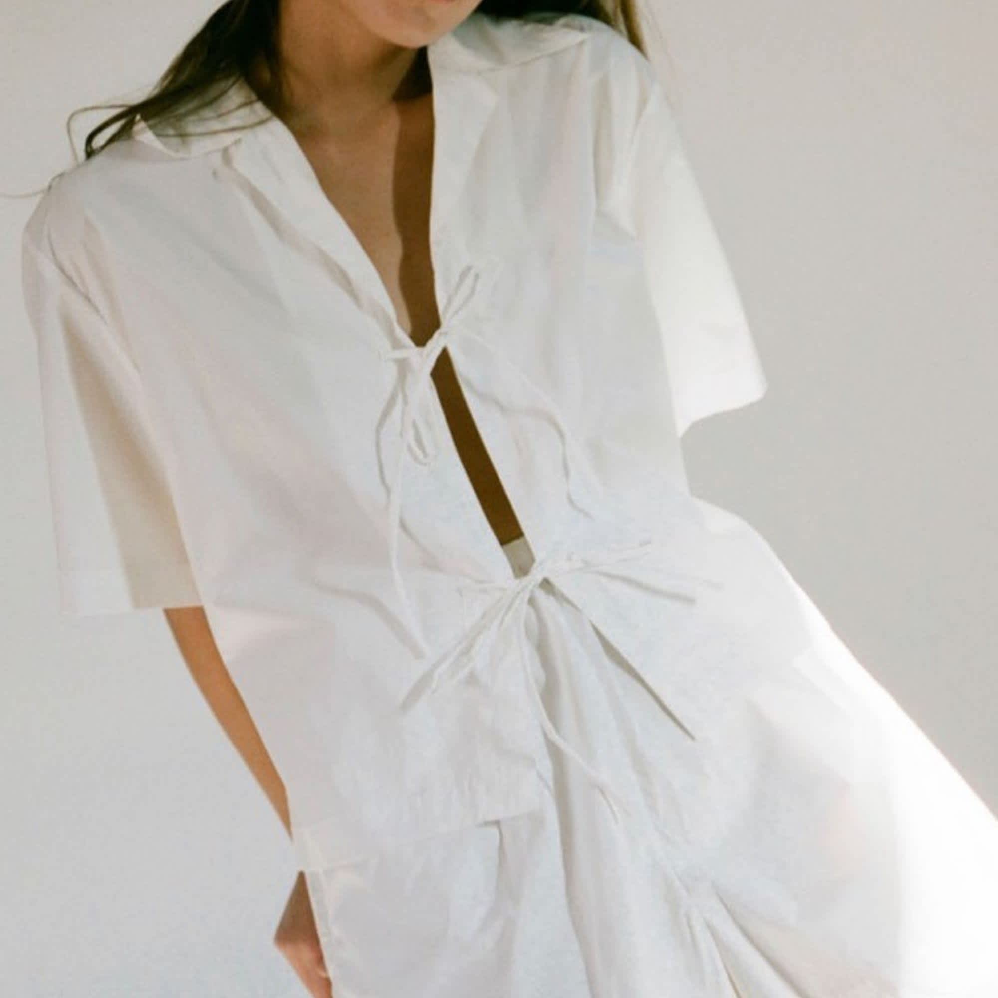 For something a bit sexier, I’d opt for the Front Tie Poplin Shirt from the label.