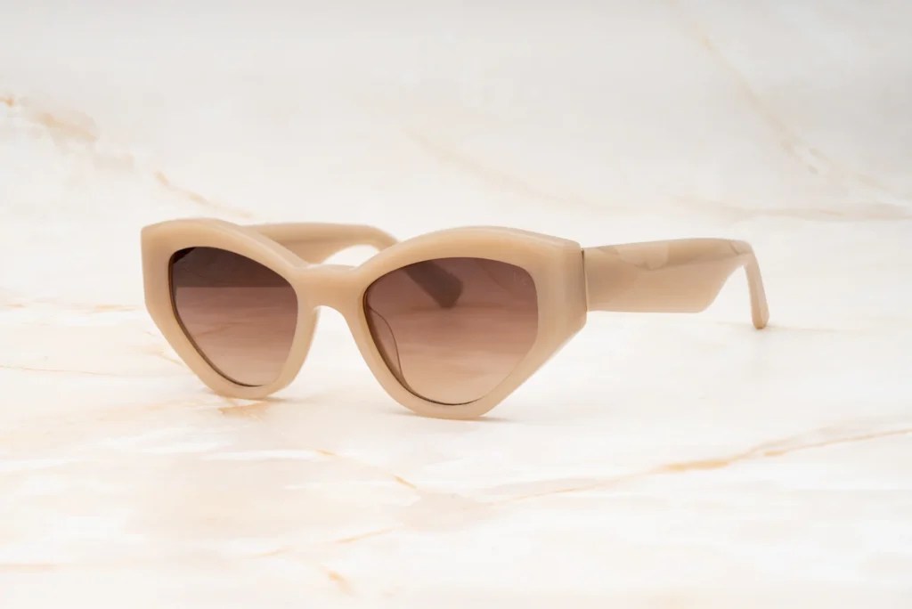 The Sydney sunnies ($120) from Luv Lou have a blunt cat eye shape that creates sharp silhouettes on your face, giving the appearance of higher cheekbones and a snatched jawline. Its tan colourway compliments nude coloured outfits and ‘no makeup’ makeup looks.