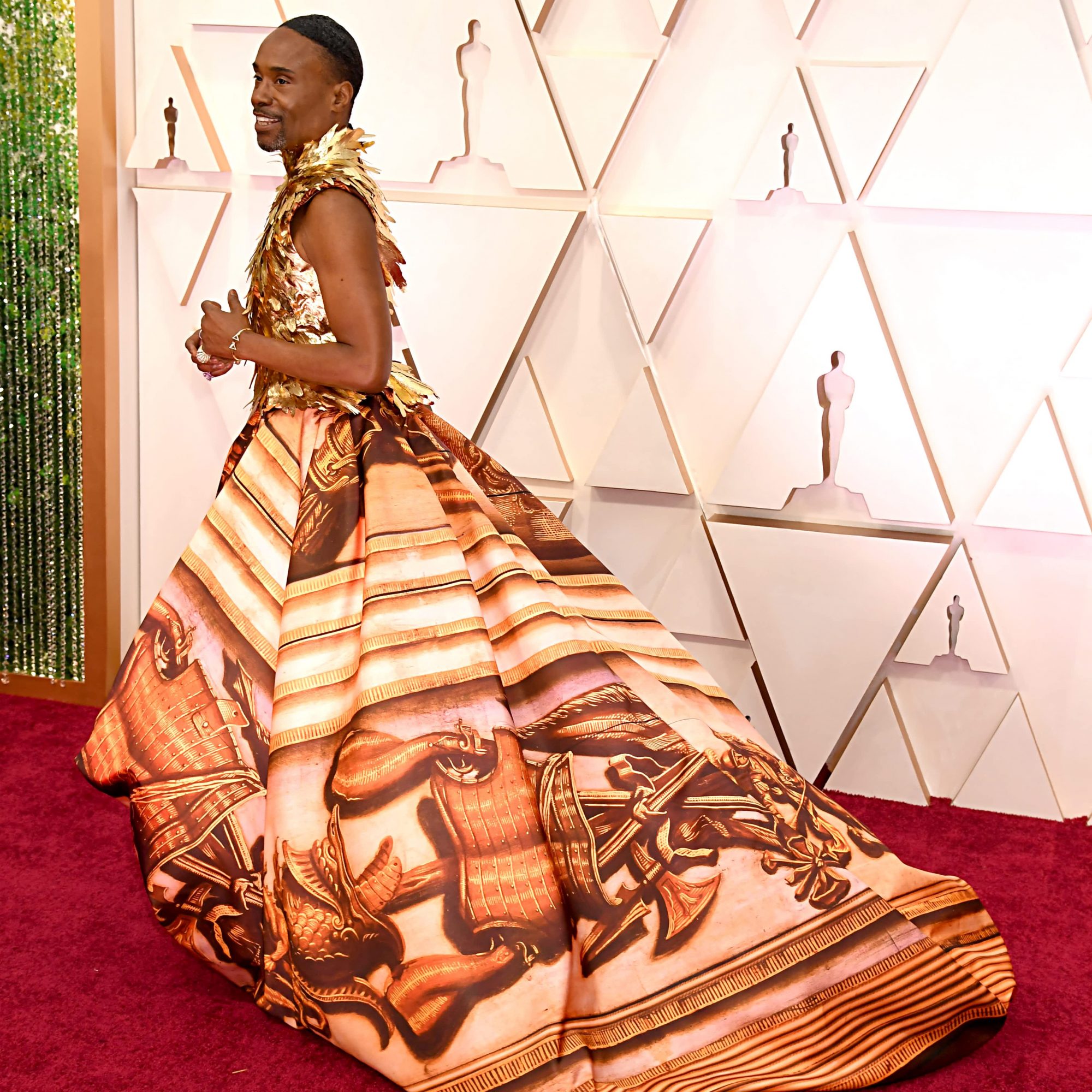 To say that Billy Porter knows how to turn heads on the red carpet would be an understatement. The EGOT-chasing singer and actor is a pioneer in gender-defying fashion, and his award show looks are truly high-couture custom-made works of art. On last year’s Oscars red carpet, Porter stole the show in a custom tuxedo gown by Christian Siriano, and for the 2020 Oscars, Porter brought his A-game yet again in a Giles Deacon gown boasting a gilded bodice made with 24-karat gold feathers. (And we would expect nothing less.) Let’s take a moment to appreciate some of Porter’s best red carpet looks of all time, shall we?