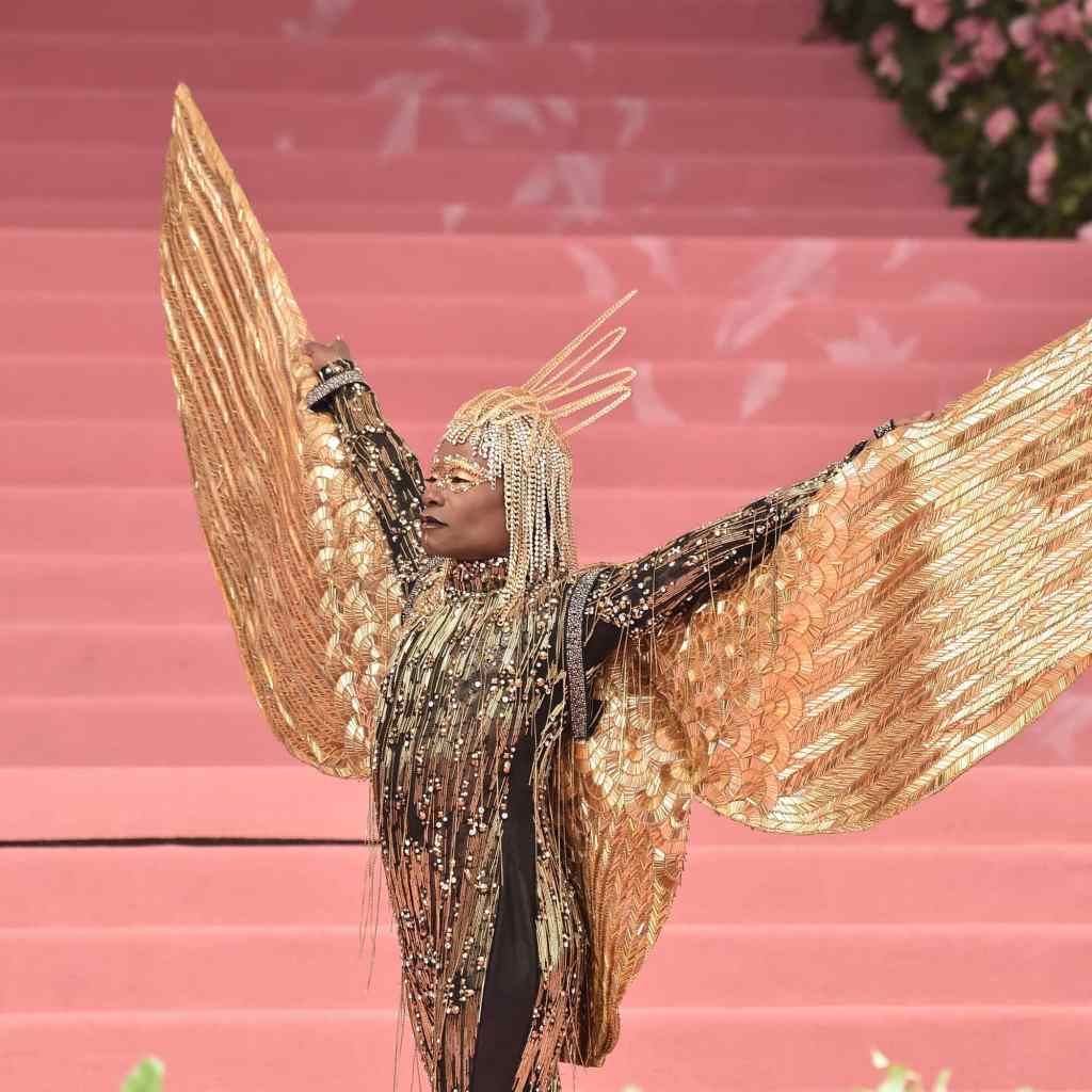 Billy Porter is helping fans stay creative and busy while social distancing. The Pose star asked his fans to participate in a little DIY project while staying at home, which he aptly called the #BillyPorterFashionChallenge. He tasked followers to re-create his iconic 2019 Met Gala outfit. You know, the one where he wore a custom gold “Sun God” outfit by The Blonds, which was inspired by both Diana Ross in 1975’s Mahogany and Elizabeth Taylor in 1963’s Cleopatra. For the Camp-themed gala last year, Billy went all out in a bedazzled catsuit that came with a pair of 10-foot wings. Yes, you read that right! He styled the bold outfit with an intricate headpiece made out of 24-karat gold and matching Giuseppe Zanotti boots.