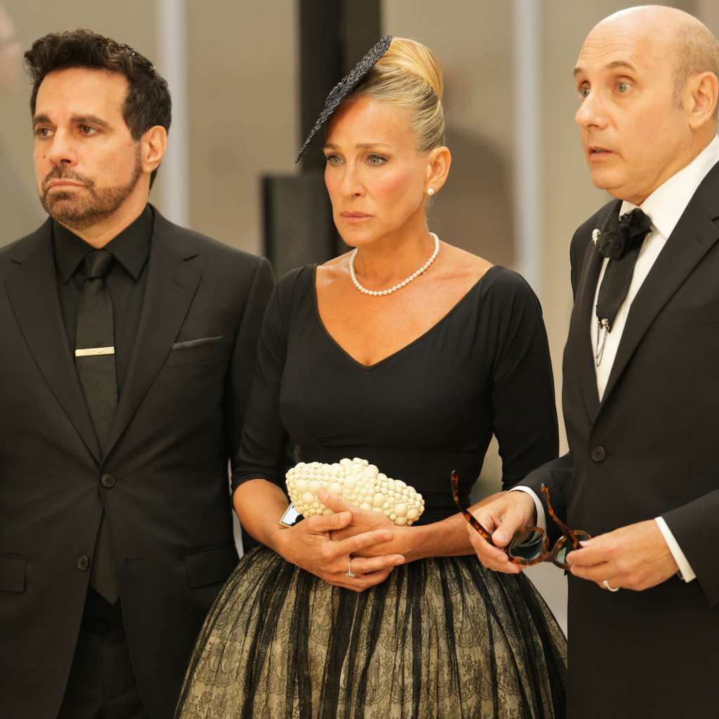 “I just want to get there before other people and make sure everything is the way I want it,” Carrie says on the phone before Big’s funeral as she sits down in her closet alongside a pearl clutch and a pair of white caged leather pumps she had already laid out. It wasn’t a question what she would wear to say goodbye to the love of her life publicly in front of family and friends. Of course, as she, Stanford, and Anthony make their way through the doors and enter a stark-white room with rows of chairs perfectly aligned, it becomes clear Carrie picked the only chic place for a funeral in Manhattan.