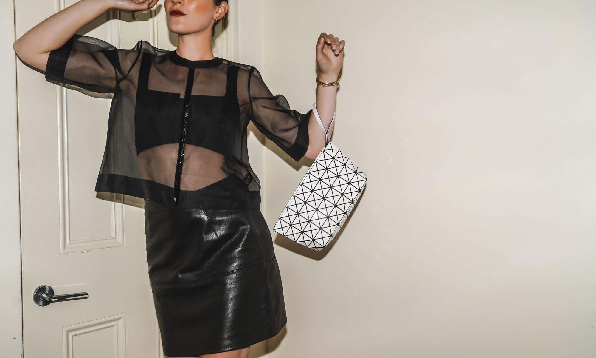 My go-to look for an end-of-year function is something short, sheer with subtle details. I love working with a timeless all-black look – a leather mini skirt and a sheer top complement each other perfectly. Pair it with a pair of classic high heels and a fashion forward bag and you have yourself a sleek, standout look for a fun night out! For this look, I shopped at Westfield Direct where I got this Cue top and crop, black leather skirt from Saba and clutch bag from Sorry Thanks I Love You.