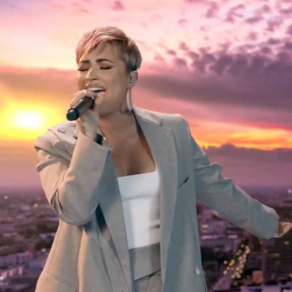 Demi Lovato was a total powerhouse while performing for President Joe Biden and Vice President Kamala Harris‘s TV special, Celebrating America, on Wednesday, Jan. 20. The 28-year-old singer showed off her pink short pixie haircut with a beige power suit by designer Stella McCartney. She gave a magical performance as she sang a cover of Bill Withers’s hit song “Lovely Day” while in Los Angeles. If you watch the performance, you’ll notice some famous faces like Lin-Manuel Miranda make an appearance next to healthcare and essential workers. We even got a glimpse of Biden holding his grandson Beau in his arms during the performance, as he and his family watched the televised special.