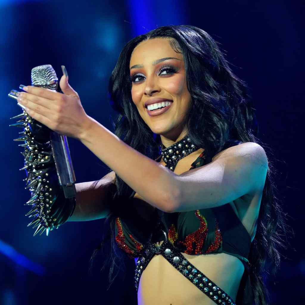 While Doja Cat is recovering from tonsil surgery and had to cancel her upcoming tour dates, there’s no denying the 26-year-old is looking drop dead gorgeous. She completed her summer look with red lips, fierce eyeliner and scrunchie in her hair.