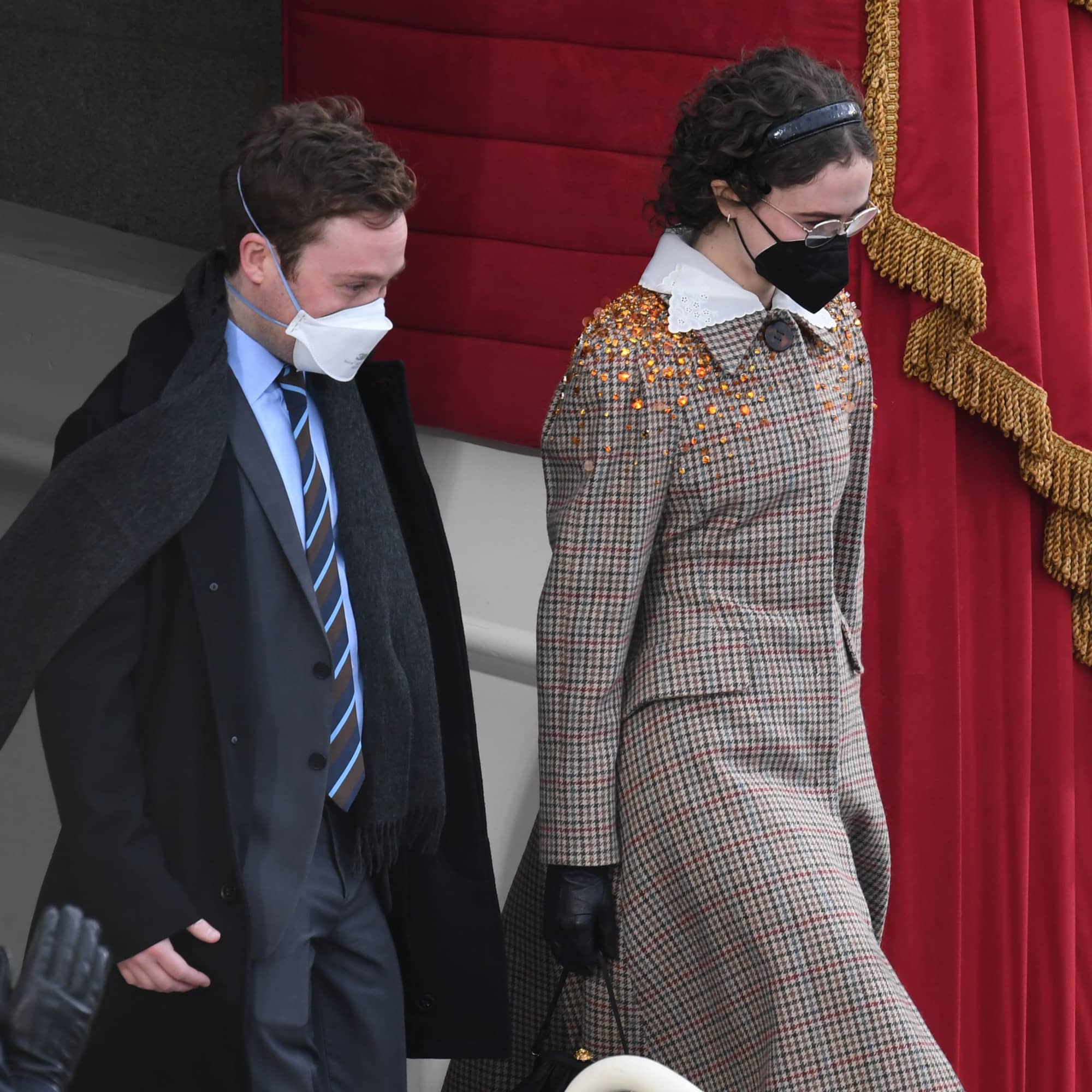A fashion designer and student at the Parsons School of Design in New York City, Ella instantly turned heads and sparked Twitter buzz as she walked down the steps of the Capitol alongside her brother, Cole. She chose to wear Miu Miu’s Shetland Pied De Poule coat while watching her stepmom make history as the first woman, first Black person, and first person of south Asian descent to serve as Vice President of the United States.