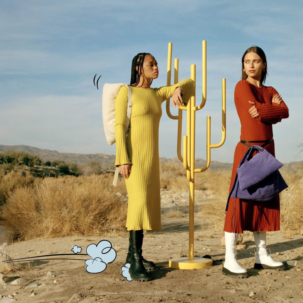 Still, we’re not out of the woods just yet. In an act of restraint, designers, including Kim Jones of Fendi, Gabriela Hearst, and Collina Strada, chose to firmly root their collections in reality via monochromatic looks in colours that literally remind us of the ground: rich dark browns that look like soil (Pantone cleverly coined this shade “root beer” brown) and reddish-browns that resemble adobe clay. The delicate balance between practical hues and lively brights can be best summed up by Leatrice Eisemen, the executive director of the Pantone Color Institute, when the colours of 2021 were chosen: “The union of an enduring Ultimate Gray with the vibrant yellow Illuminating expresses a message of positivity supported by fortitude. Practical and rock-solid but at the same time warming and optimistic, this is a color combination that gives us resilience and hope.”