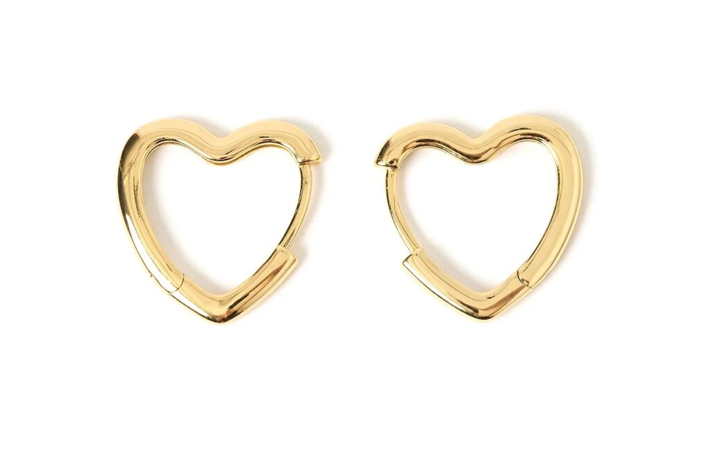 I haven’t taken these gold, heart-shaped earrings off in the last two weeks — they go with every outfit, adding a feminine detail. They’re 2cm wide and 14k gold-plated.