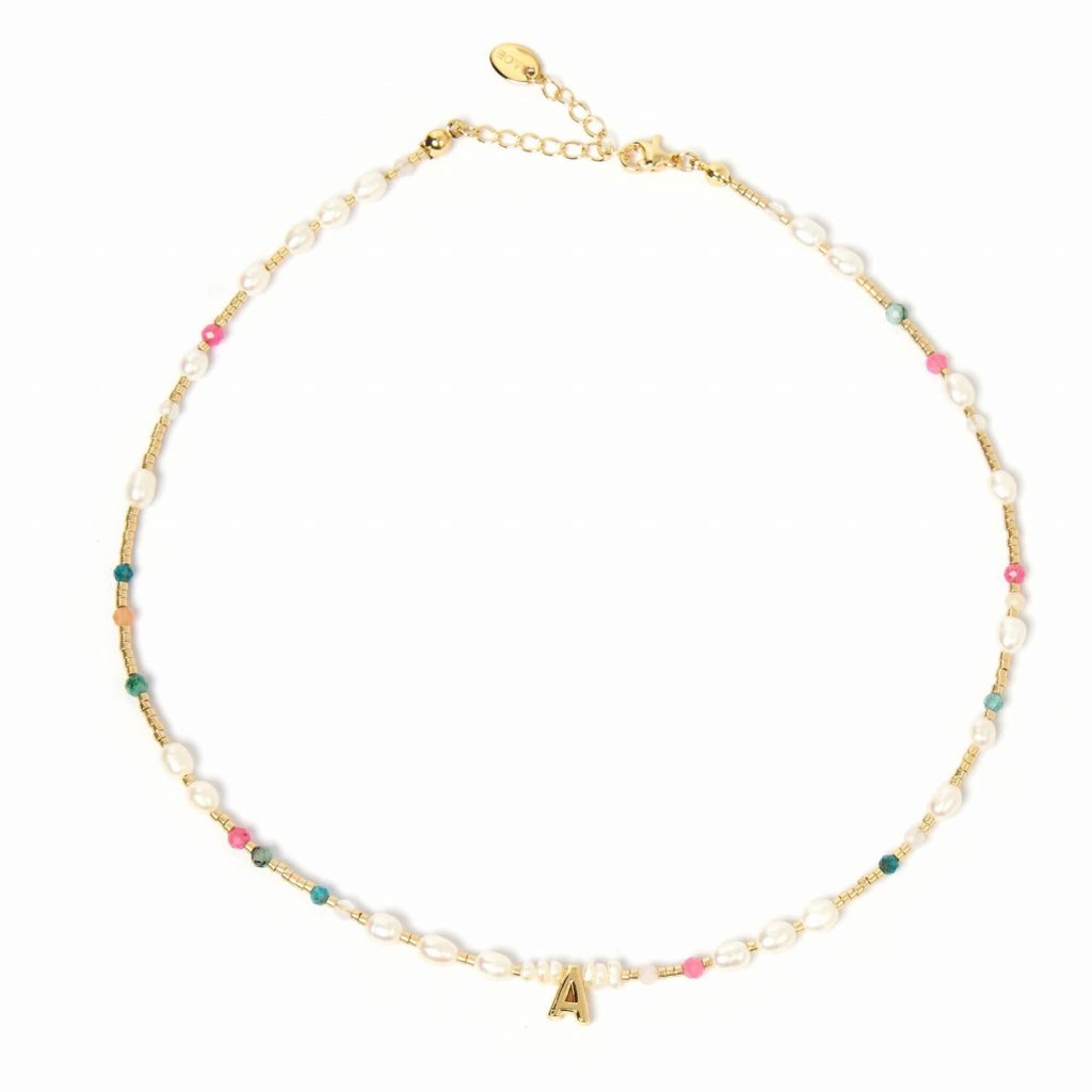 Arms of Eve Beaded Gemstone and Pearl Initial Necklace, $120